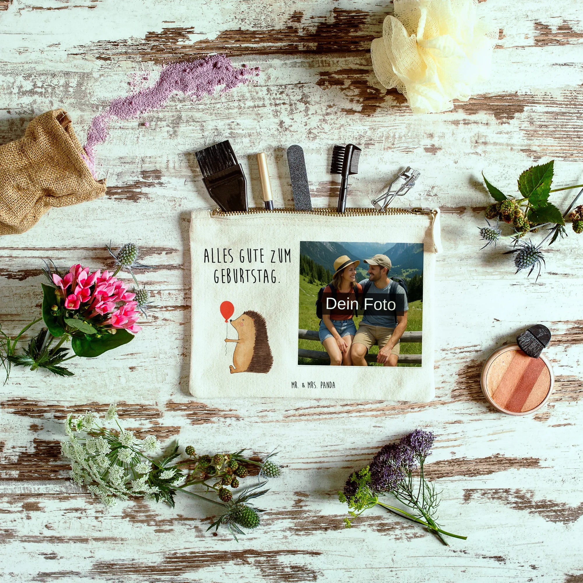 Personalisierte Foto Schminktasche Igel Luftballon – Mr. & Mrs. Panda