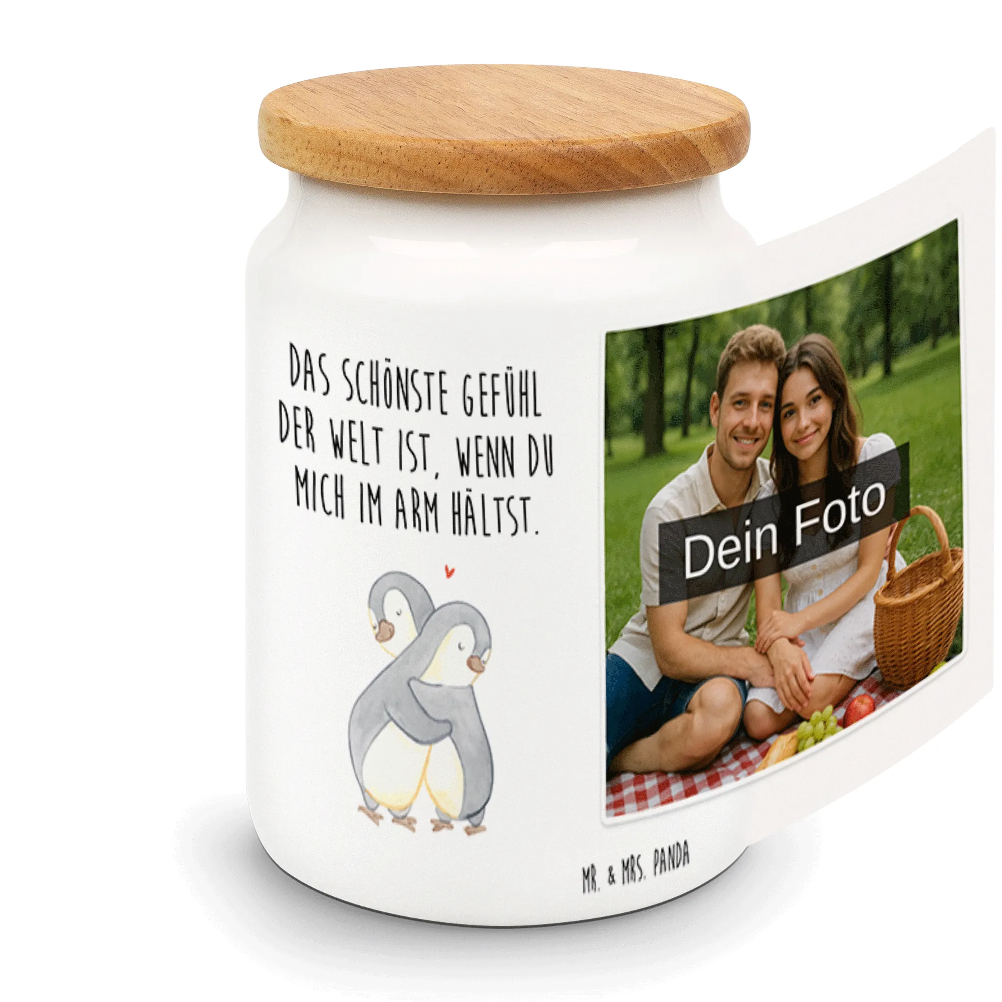 Personalisierte Foto Vorratsdose Pinguine Kuscheln