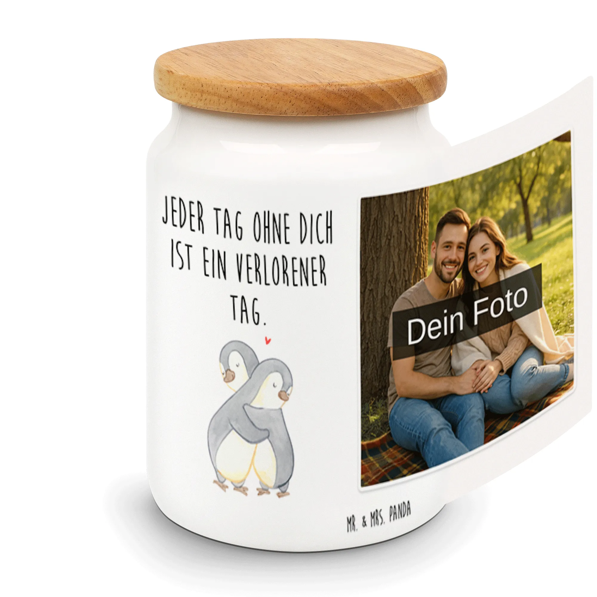 Personalisierte Foto Vorratsdose Pinguine Kuscheln – Mr. & Mrs. Panda