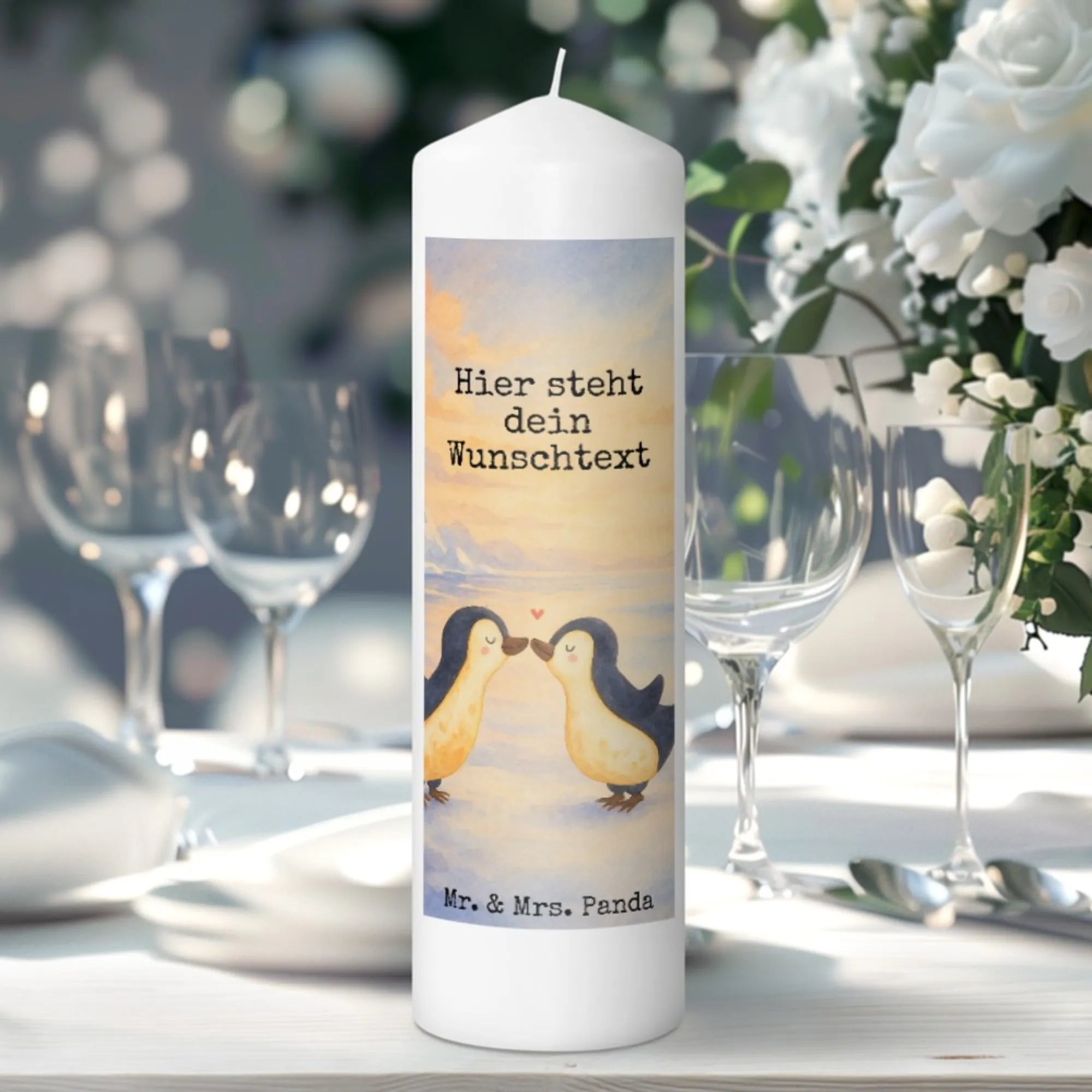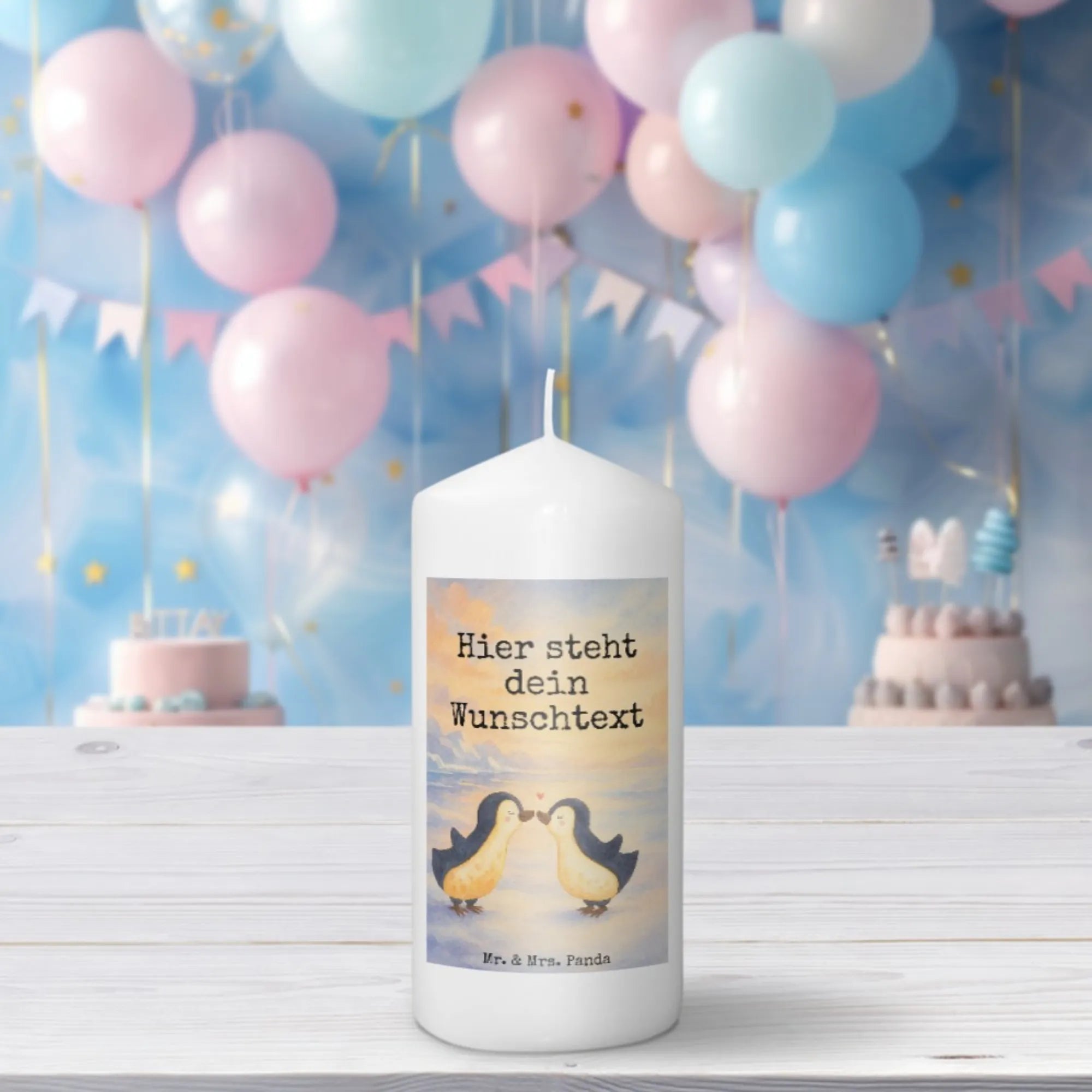Personalisierte Kerze Pinguin Liebe Design - 19 x 8 cm