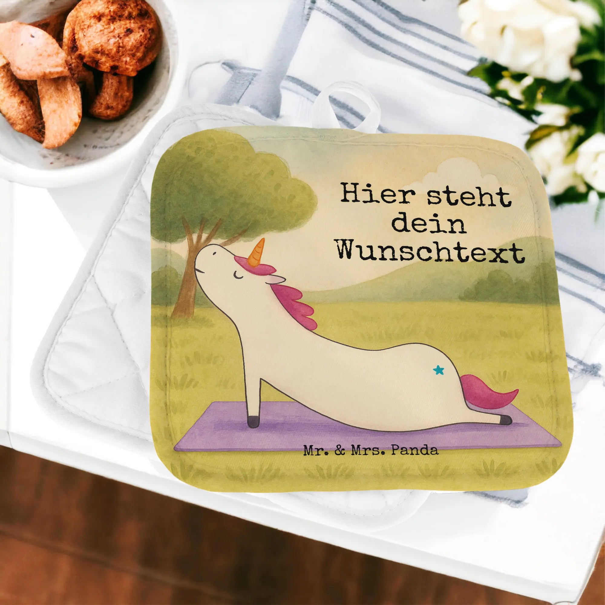 Personalisierte Topflappen Einhorn Yoga Design