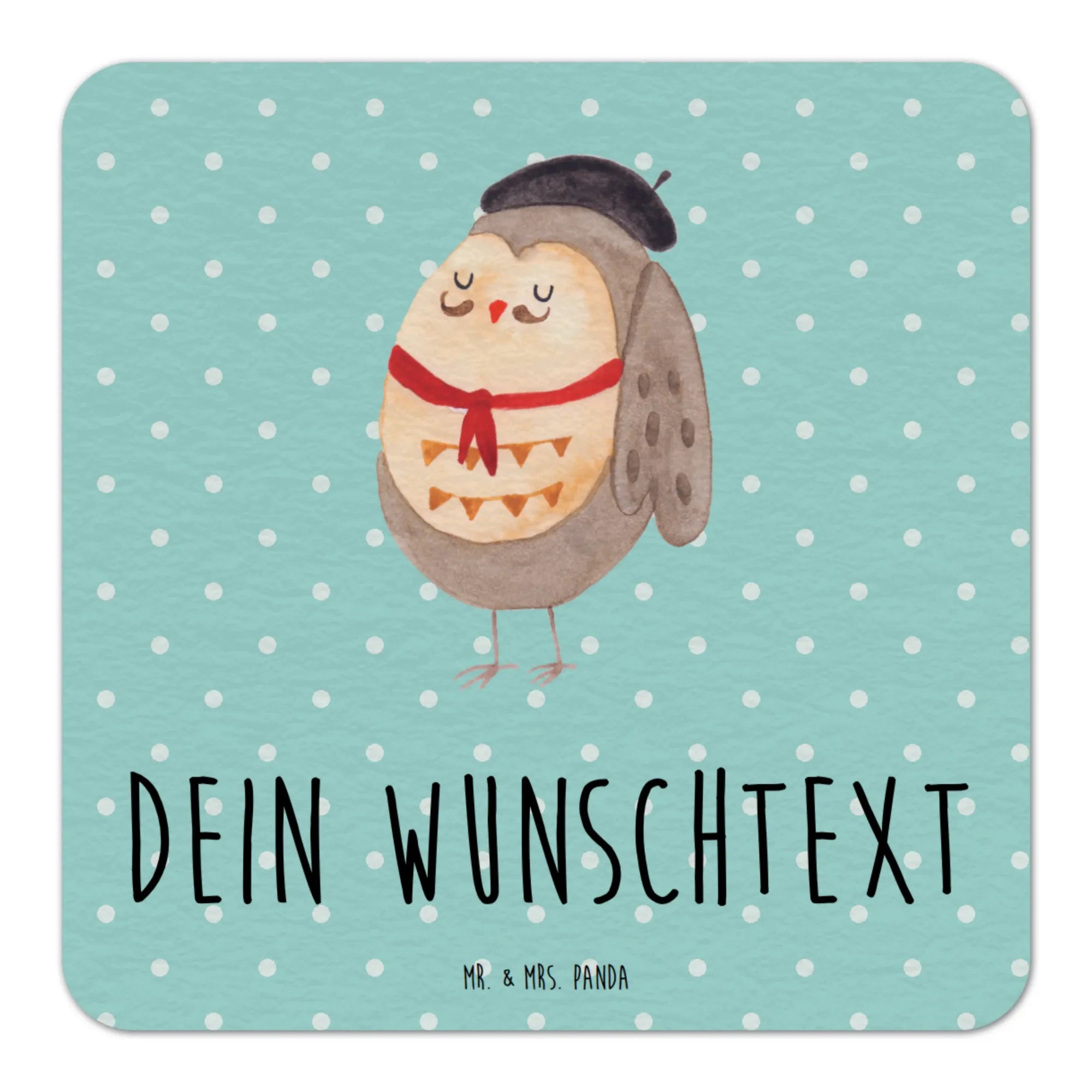 Personalisierter Bierdeckel Eule Frankreich – Mr. & Mrs. Panda