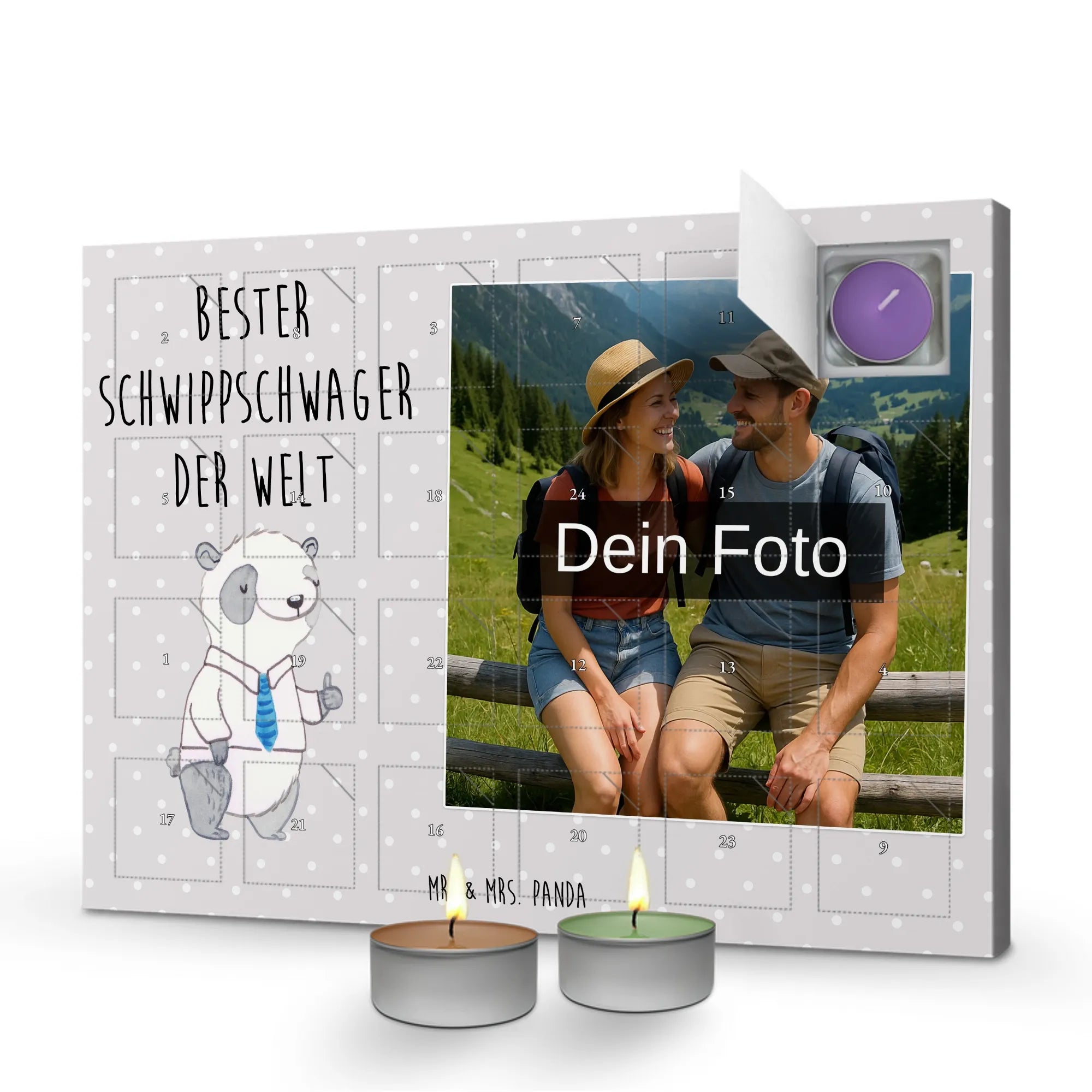Suchst du nach dem perfekten Geschenk für deinen Schwippschwager? Dann ist unser personalisierter Duftkerzen Foto Adventskalender "Bester Schwippschwager der Welt" von Mr. & Mrs. Panda genau das Richtige!