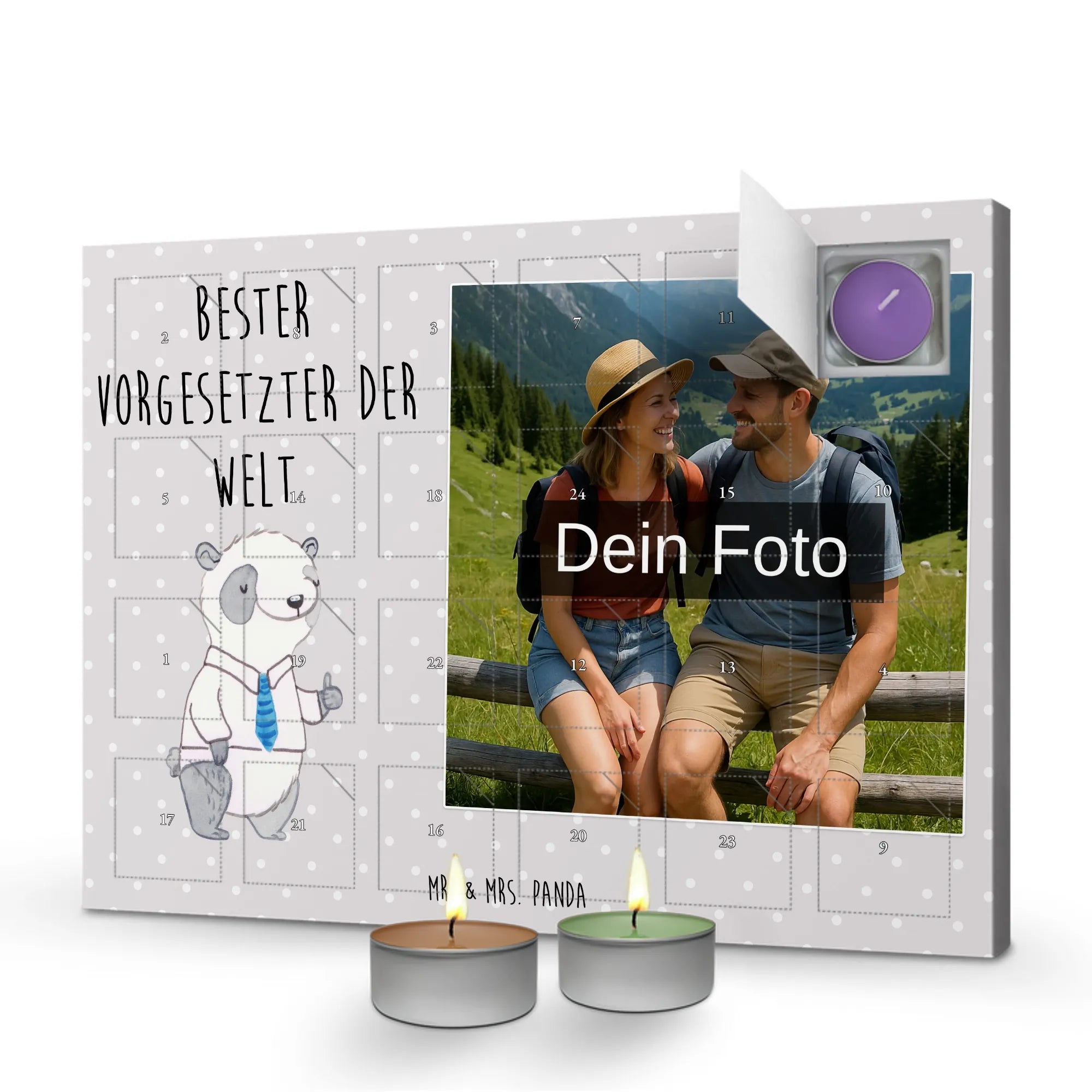Personalisierter Duftkerzen Foto Adventskalender Panda Bester Vorgesetzter der Welt