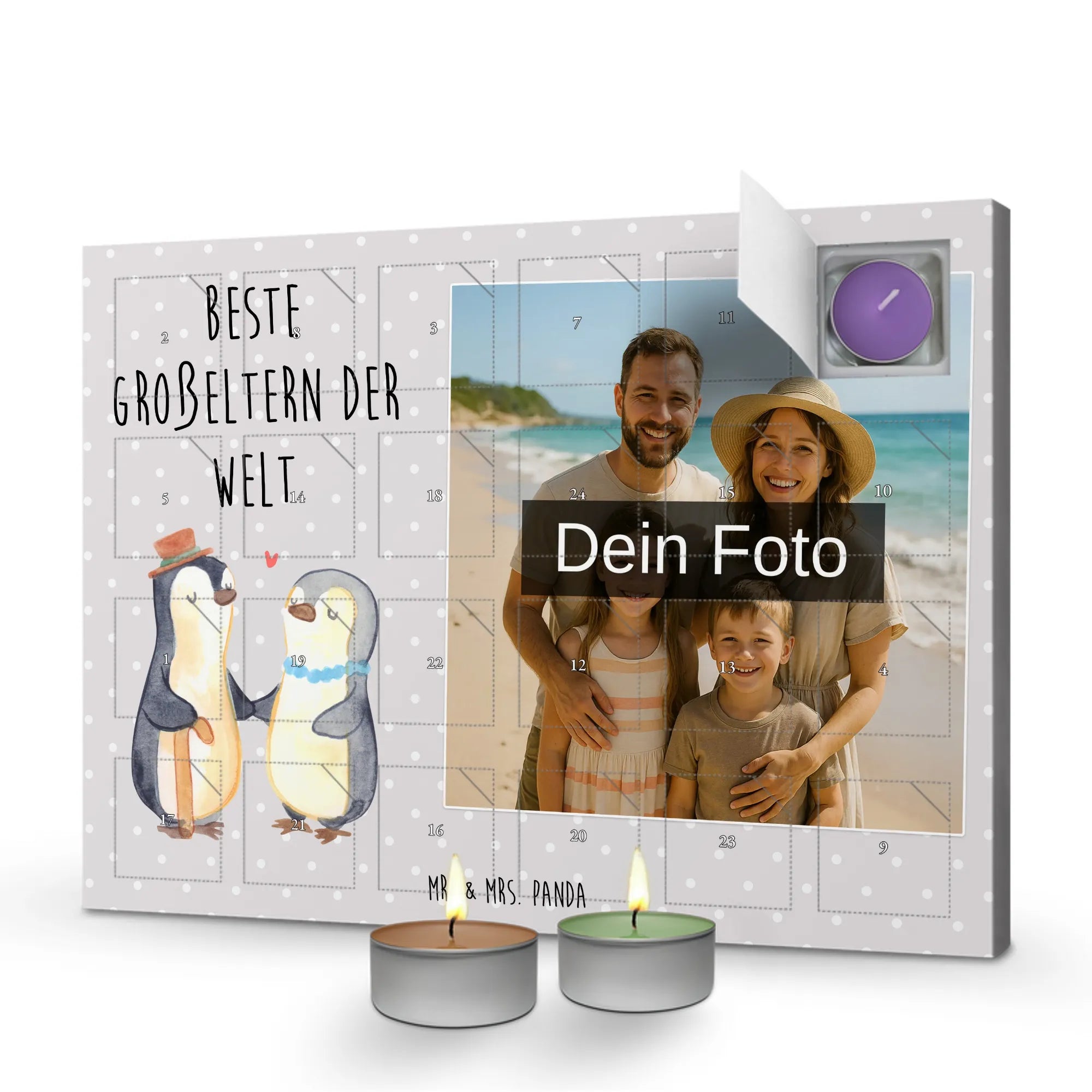 Personalisierter Duftkerzen Foto Adventskalender Pinguin Beste Großeltern der Welt