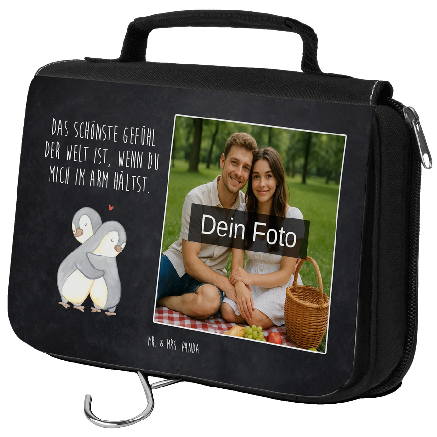 Personalisierter Foto Kulturbeutel Pinguine Kuscheln - Kreidetafel