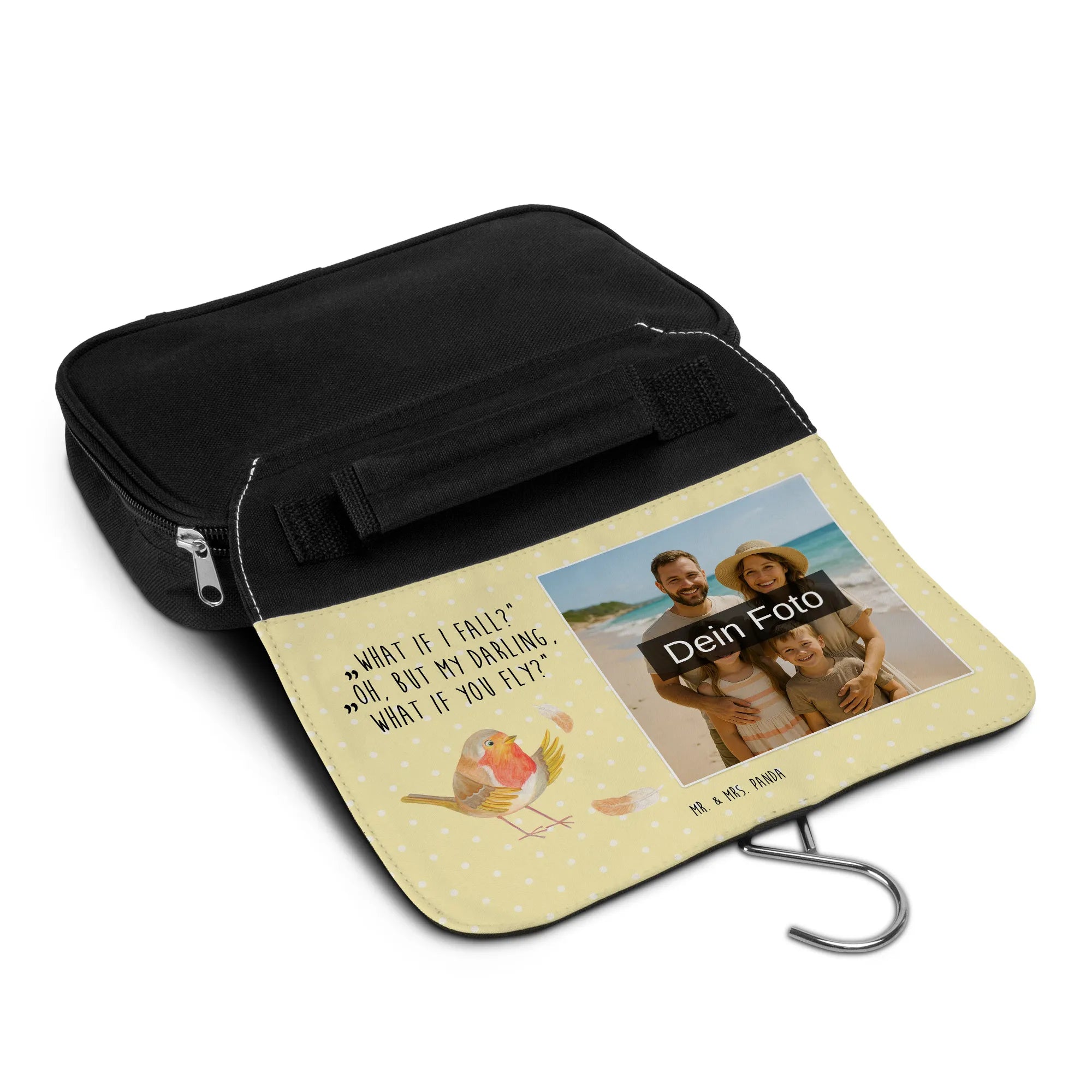 Personalisierter Foto Kulturbeutel Rotkehlchen Federn