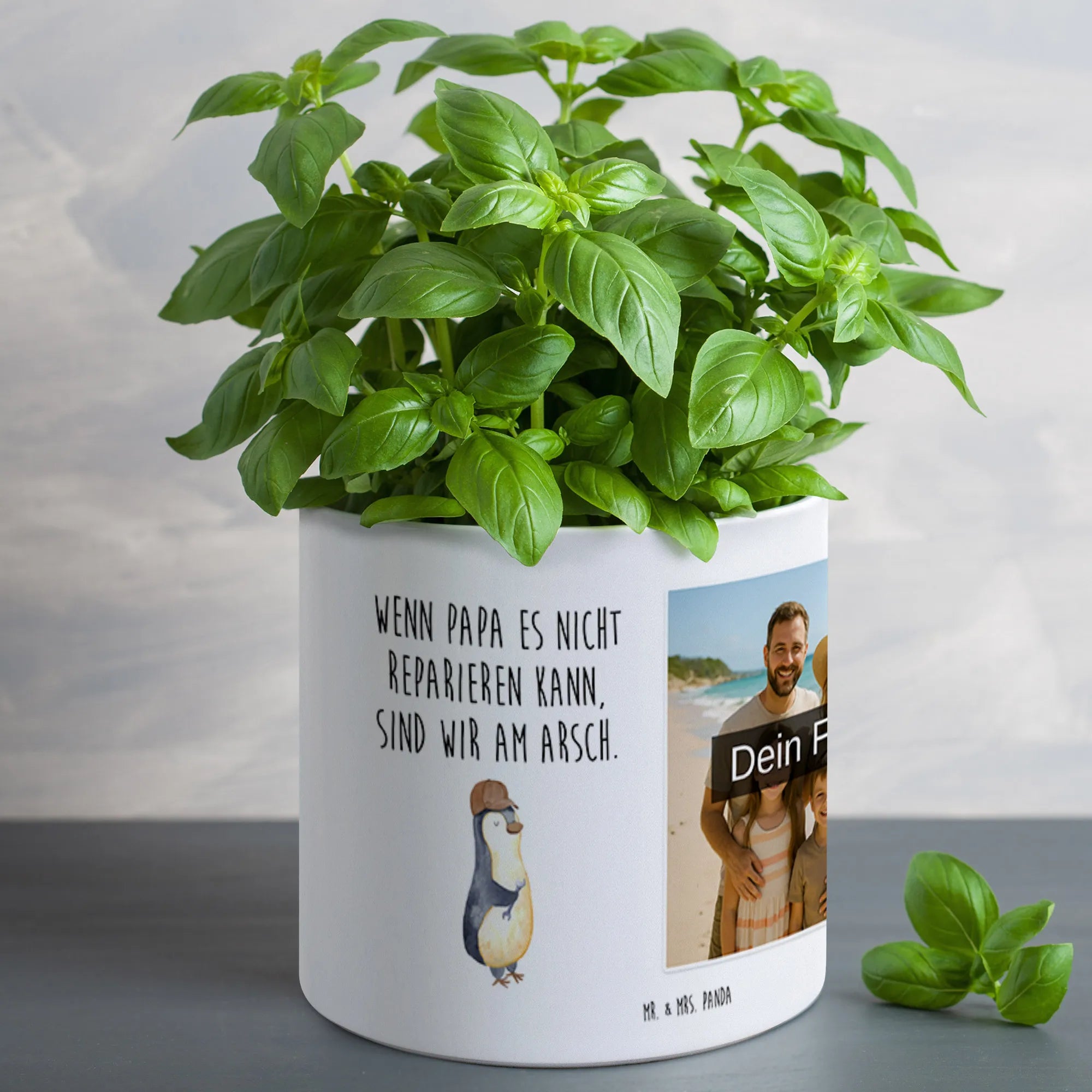 Gestalte deinen Raum mit unserem personalisierten Foto XL Blumentopf von Mr. & Mrs. Panda! Mit einer Größe von 135 mm x 142 mm und einem großzügigen Durchmesser von 142 mm ist er ideal für Kräuter oder größere Pflanzen. Der schicke, glänzende Keramiktopf bietet nicht nur einen perfekten Platz für deine grünen Freunde, sondern auch ein praktisches Entwässerungsloch, das einen gesunden Wasserhaushalt gewährleistet. Personalisiere ihn mit deinem Lieblingsfoto in hoher Auflösung und mache ihn zu einem unverwechselbaren Stück für dein Zuhause. Achte darauf, dass der Bildausschnitt gut ausgewählt ist, um die besten Momente festzuhalten. Pflege ihn ganz einfach, denn er ist spülmaschinenfest und eignet sich für den Innen- und Außenbereich. Lass deine Pflanzen strahlen in diesem einzigartigen Blumentopf!