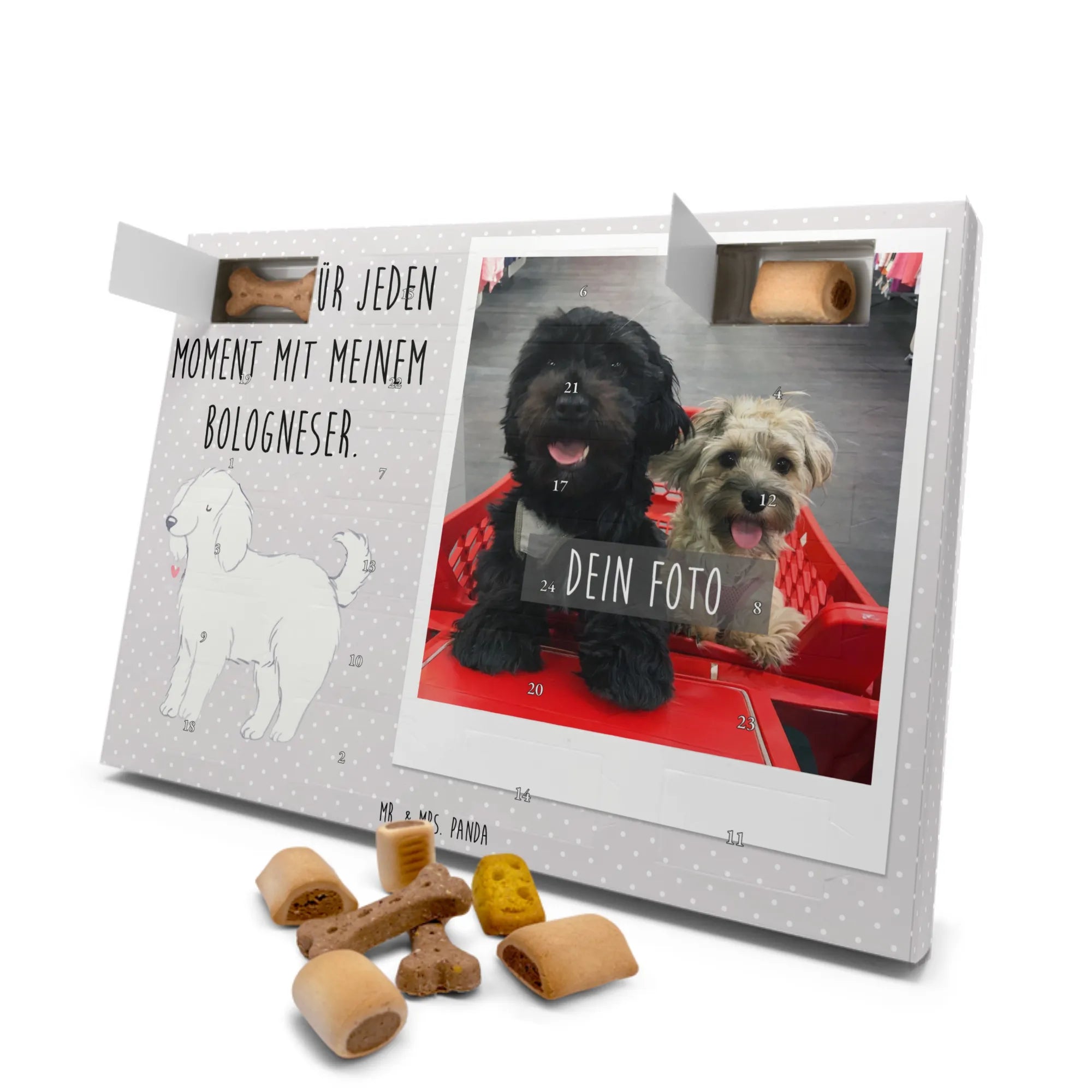 Der personalisierte Hunde Foto Adventskalender mit dem wunderschönen Bologneser Motiv von Mr. & Mrs. Panda ist das perfekte Geschenk für alle Hundeliebhaber und Bologneser-Besitzer. Jedes Jahr zur Adventszeit wird die Vorfreude auf Weihnachten mit diesem ganz besonderen Kalender noch größer. Mit 24 Türchen, die mit leckeren Premium-Hundekuchen gefüllt sind, sorgt der Kalender für tägliche Freude für deinen vierbeinigen Freund.