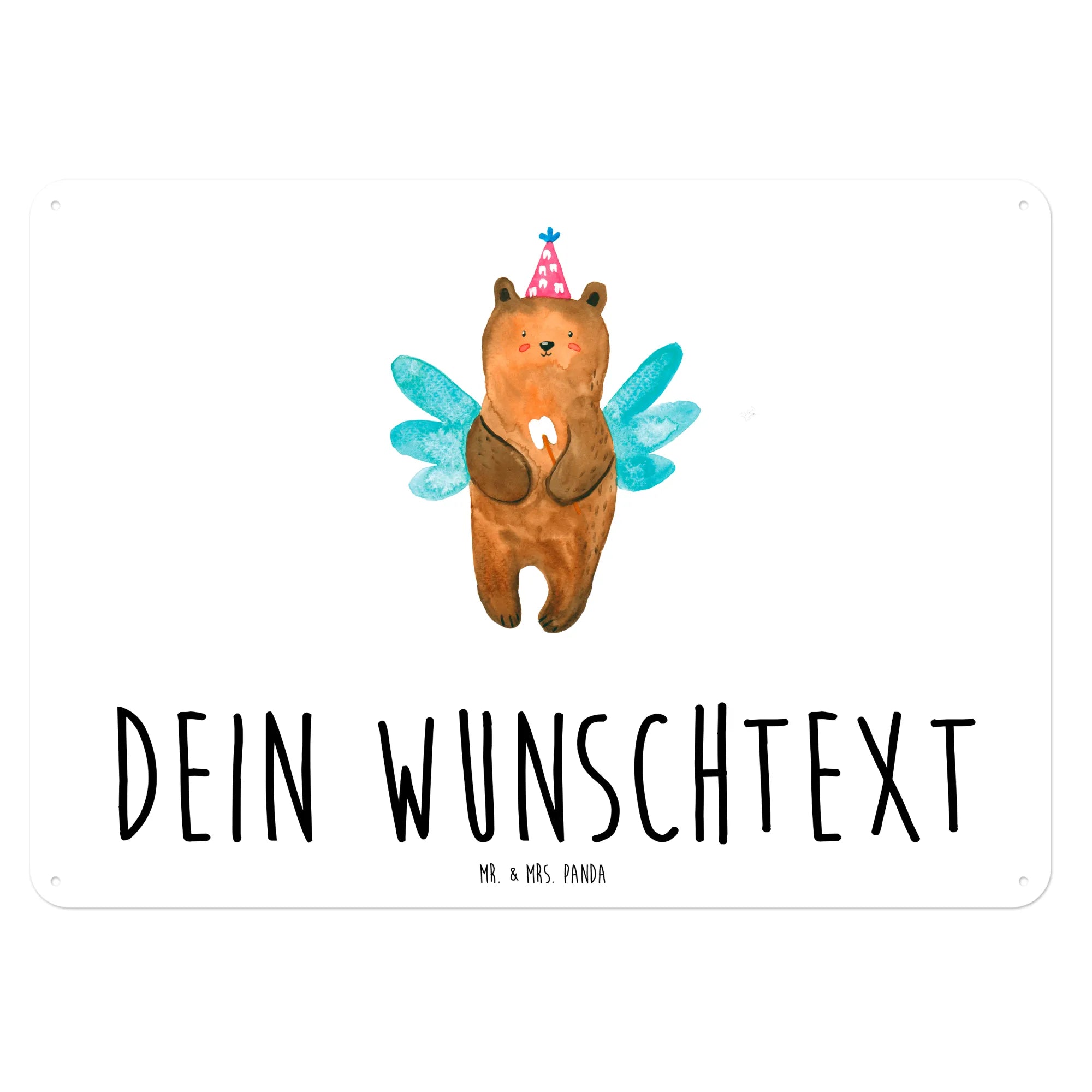 Das personalisierte Blechschild mit dem liebevollen Motiv "Zahnfee Bär" von Mr. & Mrs. Panda ist das perfekte Geschenk für die ganz Kleinen, die gerade ihre ersten Zähnchen verloren haben oder auf den ersten Zahn warten!