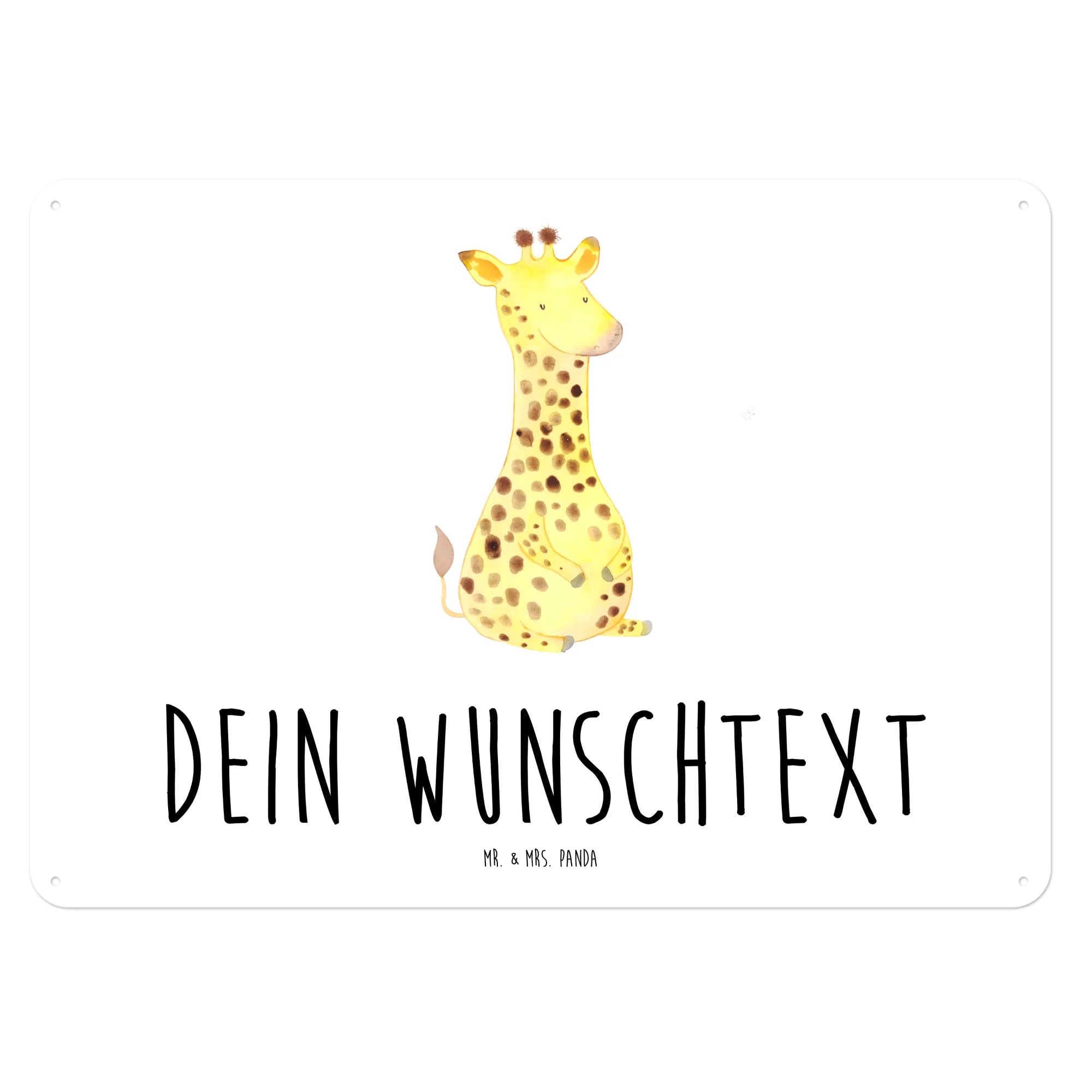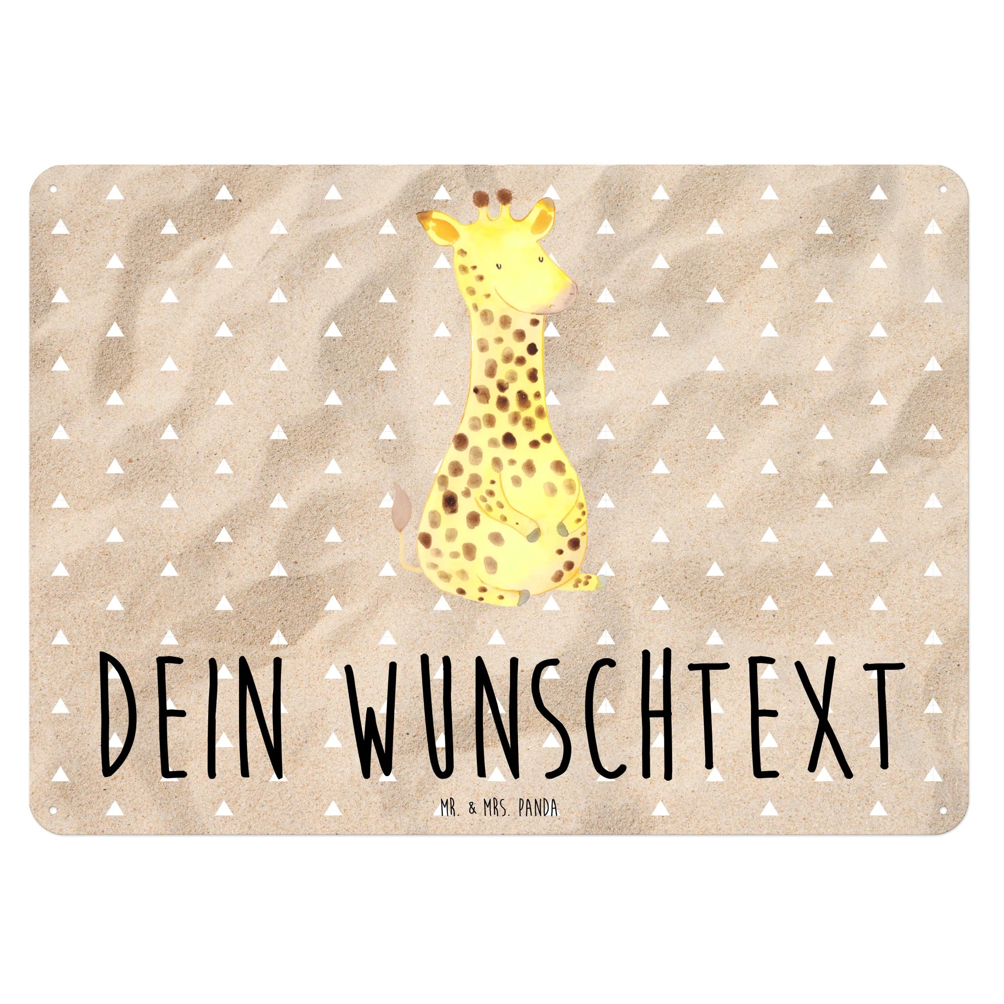 Das personalisierte Blechschild mit dem Motiv "Giraffe Zufrieden" von Mr. & Mrs. Panda ist das perfekte Geschenk für alle, die das Besondere lieben! Dieses edel bedruckte Metallschild bringt afrikanisches Flair in dein Zuhause und zaubert jedem ein Lächeln ins Gesicht.
