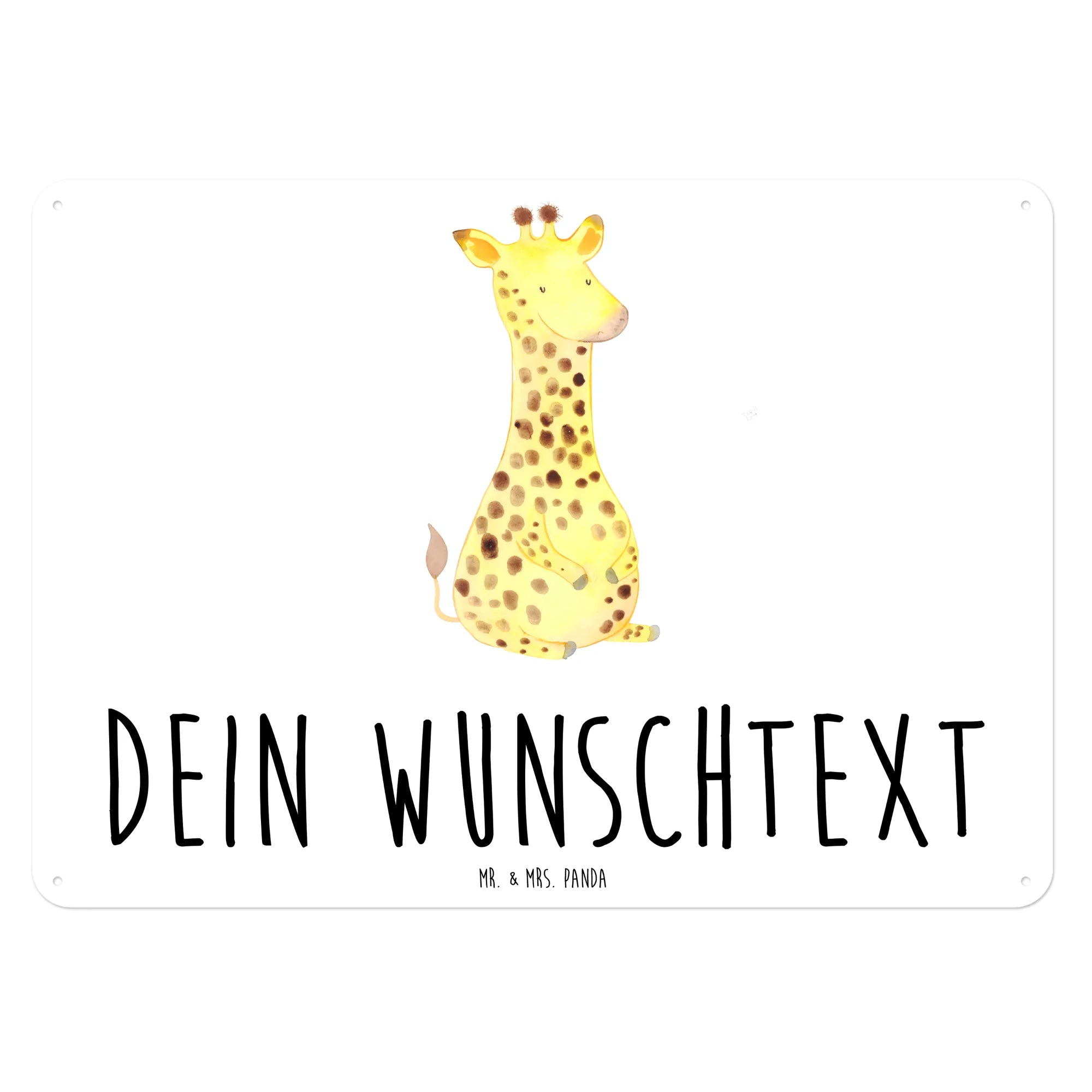 Personalisiertes Blechschild Giraffe Zufrieden - DIN A3 - Weiß
