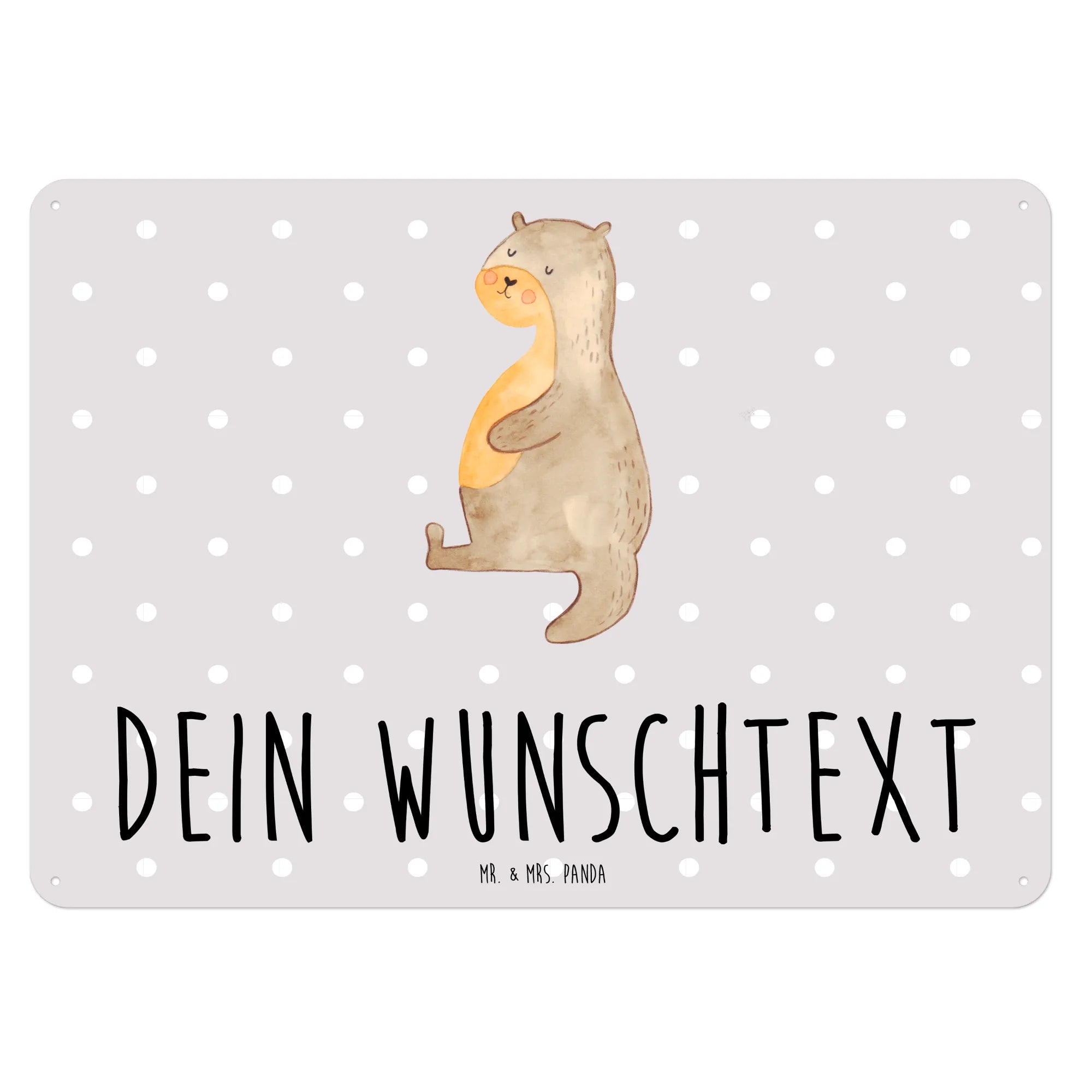Hol dir ein Stück Mr. & Mrs. Panda Liebe nach Hause und schenke anderen ein Lächeln – mit dem Otter Bauch Blechschild als persönlichem Metallschild mit Wunschtext. 🥰