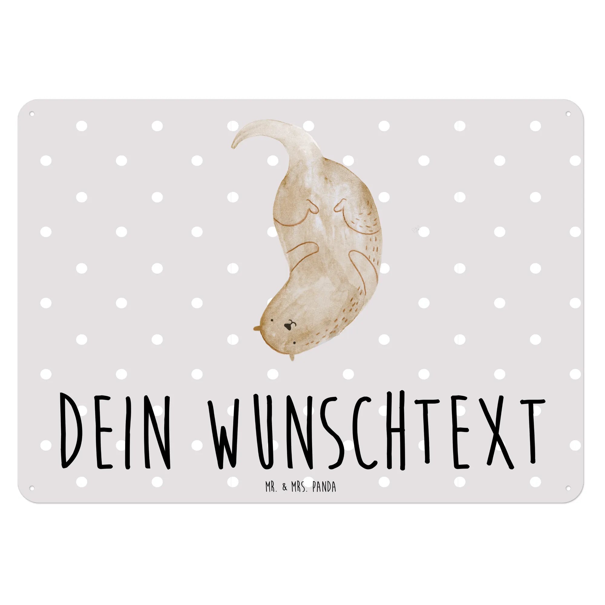 Personalisiertes Blechschild Otter Kopfüber - DIN A3 - Grau Pastell