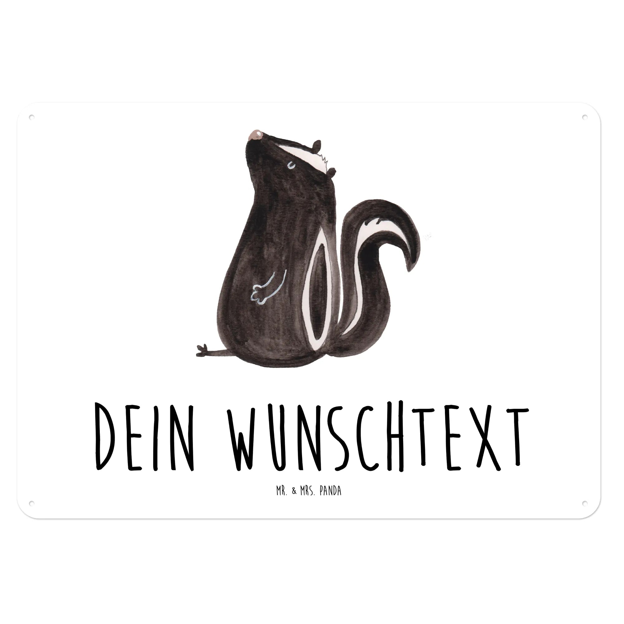 Entdecke das personalisierte Blechschild mit dem bezaubernden Motiv des sitzenden Stinktiers aus der Stinktier-Kollektion von Mr. & Mrs. Panda. Dieses edle Schild wird deinem Zuhause nicht nur eine witzige, sondern auch eine gemütliche Note verleihen.