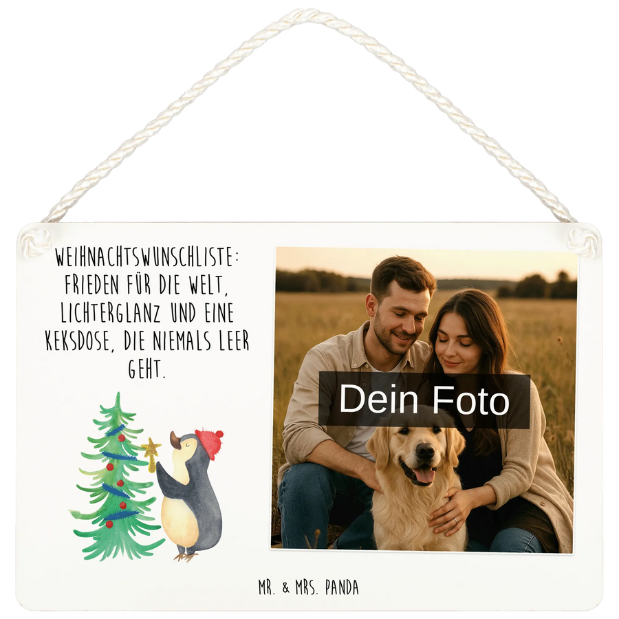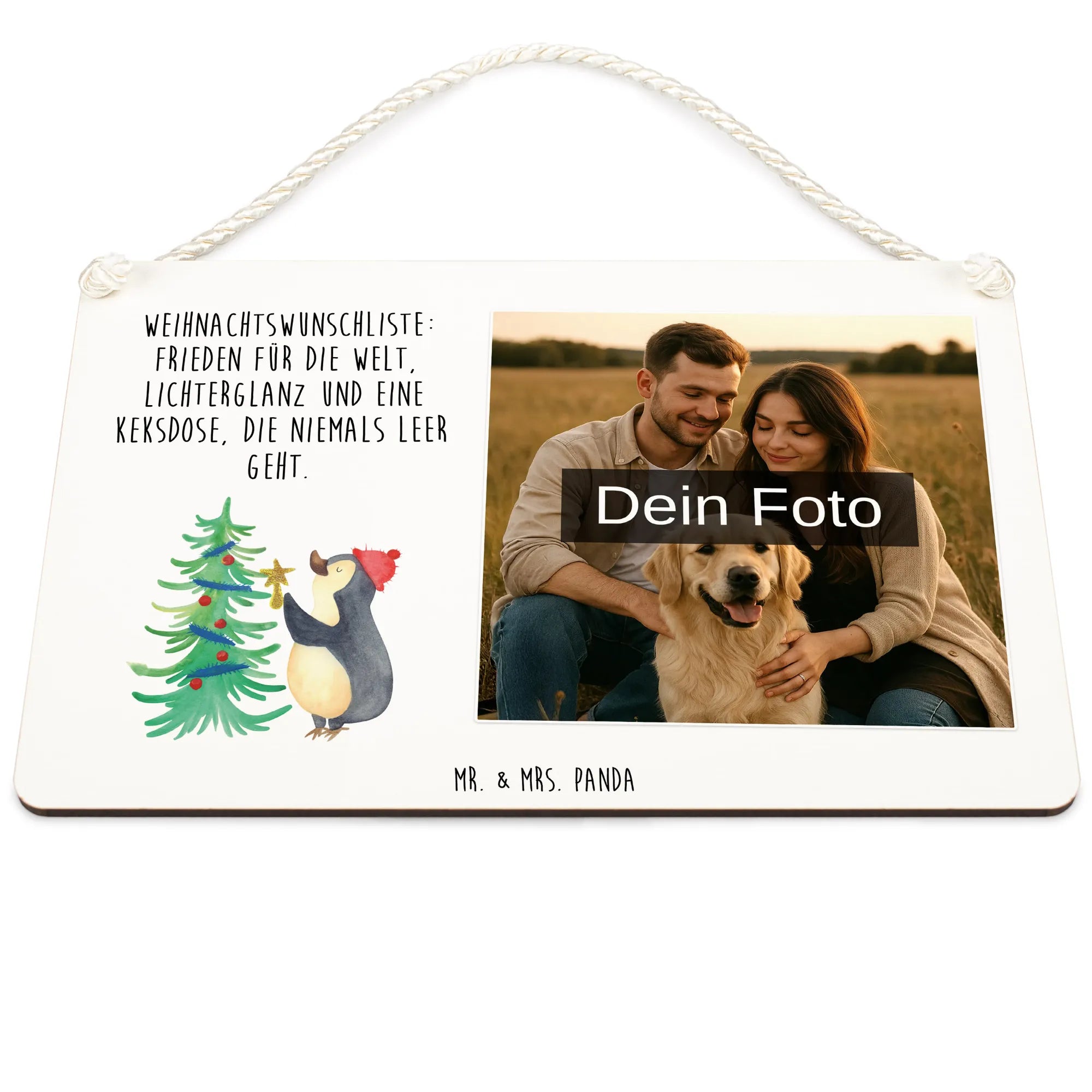 Personalisiertes Foto Deko Schild Pinguin Weihnachtsbaum - DIN A5