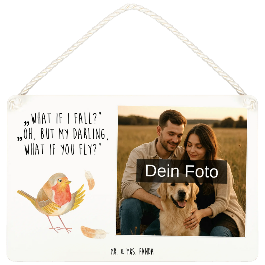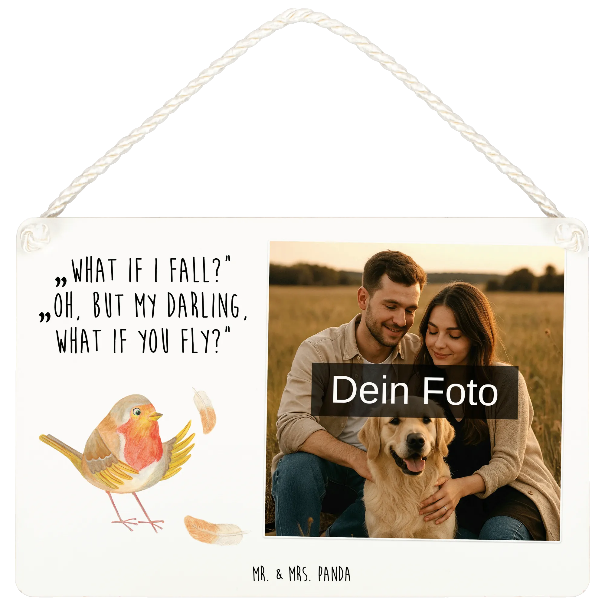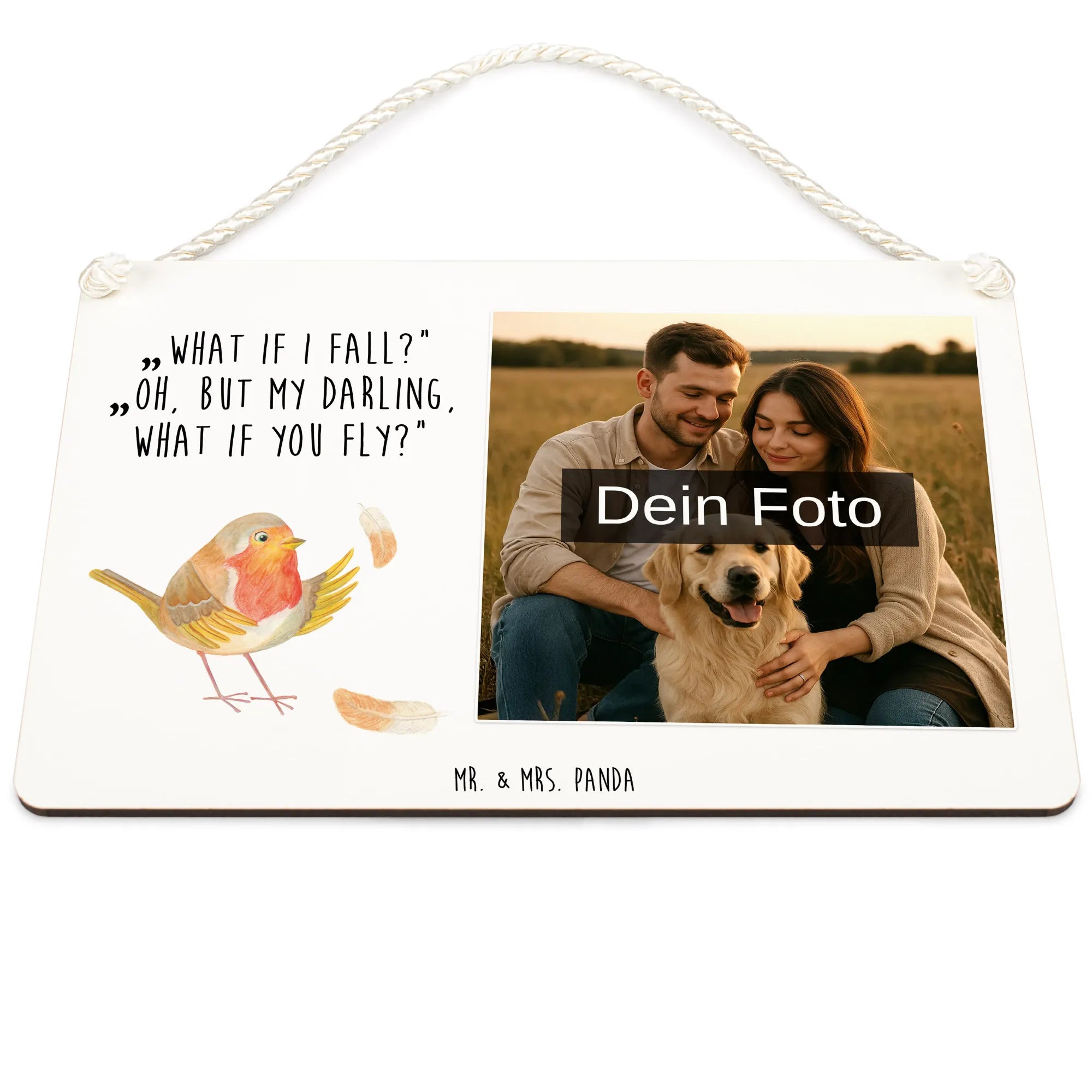 Personalisiertes Foto Deko Schild Rotkehlchen Federn - DIN A5