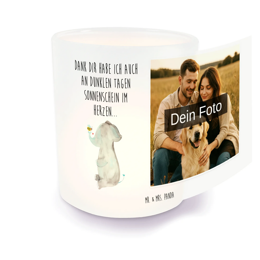 Bist du auf der Suche nach einem besonderen Geschenk? Unser personalisiertes Foto Windlicht von Mr. & Mrs. Panda ist die perfekte Wahl! Hergestellt aus satiniertem Glas, misst es 70 mm x 80 mm und verleiht jedem Raum einen besonderen Glanz. Du kannst dein Windlicht mit einem Wunschfoto ganz individuell gestalten. Achte darauf, das Foto in hoher Auflösung hochzuladen, damit alles klar und deutlich erscheint. Prüfe den Bildausschnitt, denn es wäre schade, wenn etwas Wichtigeres abgeschnitten wird. Ideal für Teelichter, schützt es sie hervorragend vor Wind und sorgt für eine romantische Stimmung überall. Verwöhne dein Windlicht mit sanfter Handwäsche, um seine Schönheit zu bewahren. Mach mit diesem Windlicht unvergessliche Momente erlebbar!