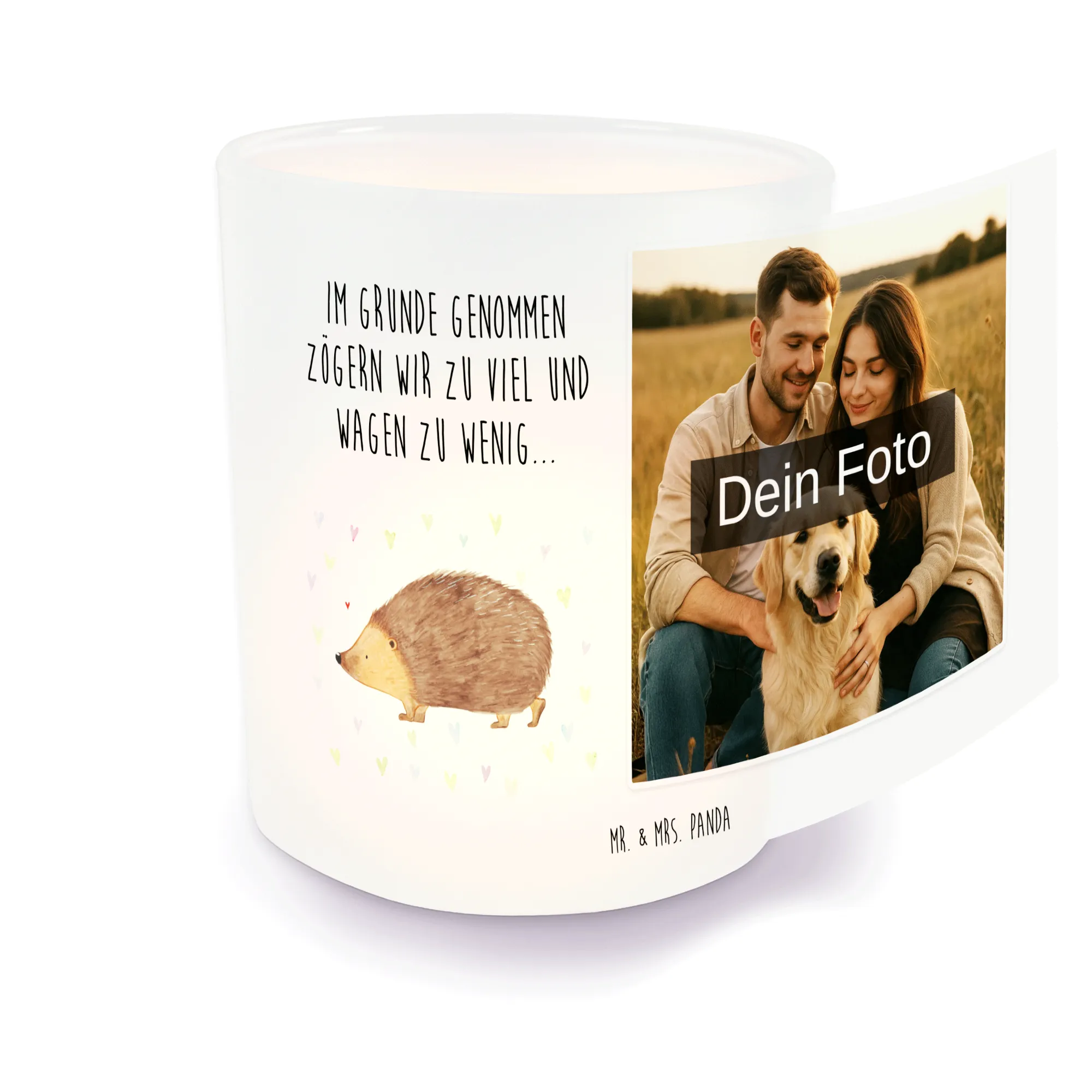 Personalisiertes Foto Windlicht Igel Herzen