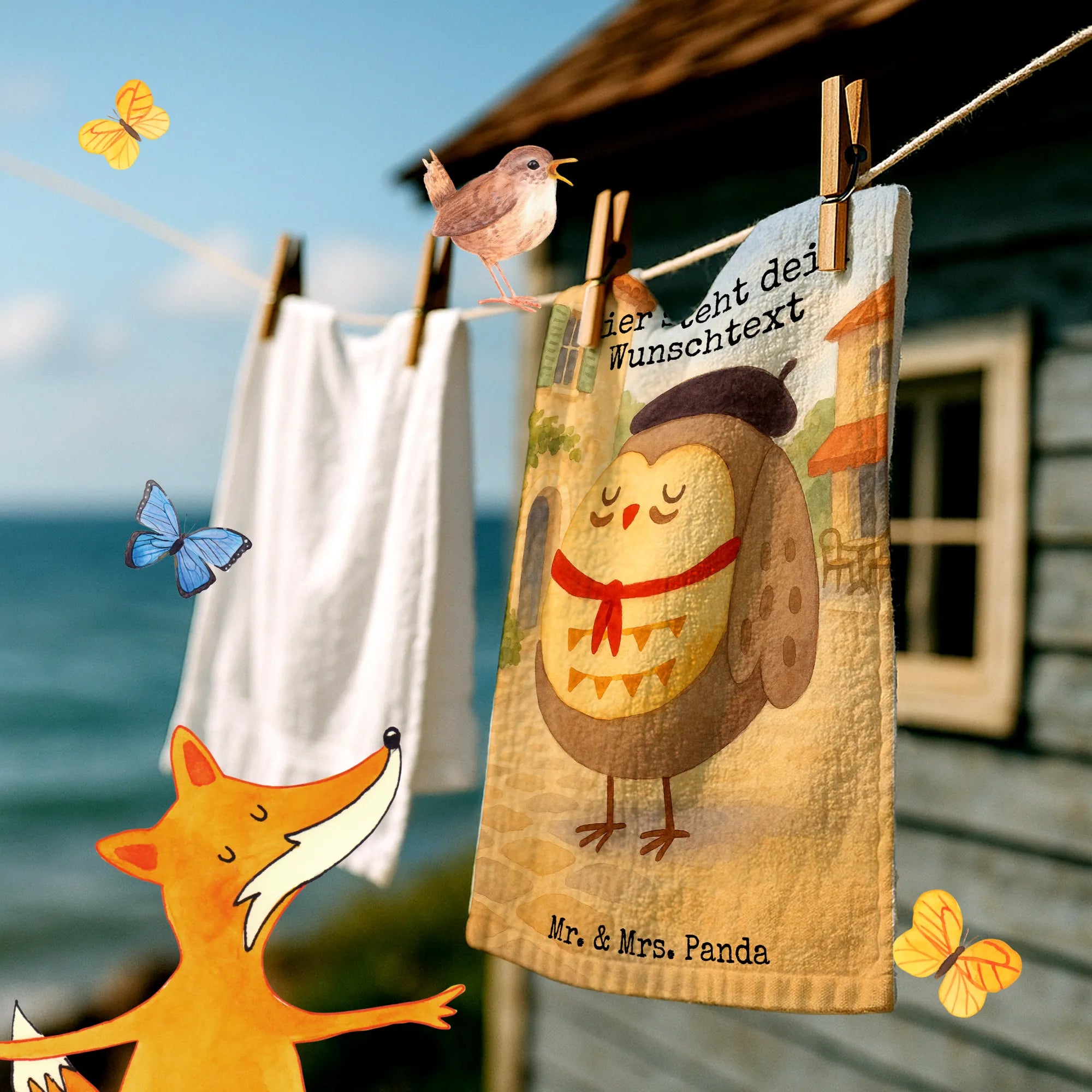 Personalisiertes Gästehandtuch Eule Frankreich Design