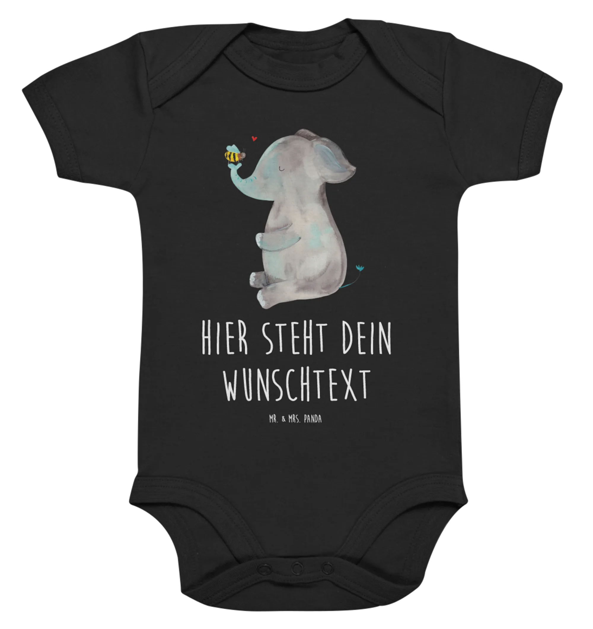 Personalized Baby Bodysuit elephant bee - 12. - 18. Monat - Black