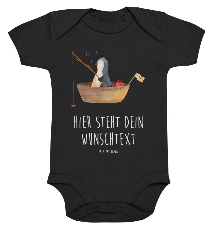 Personalized Baby Bodysuit Penguin fishing boat - 12. - 18. Monat - Black