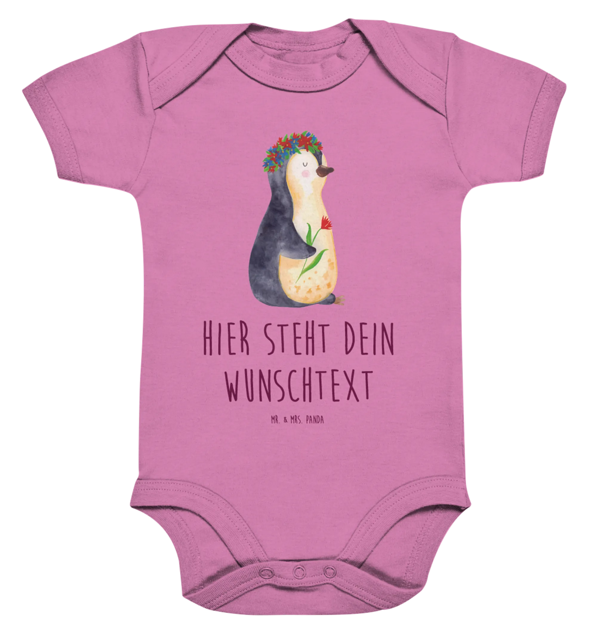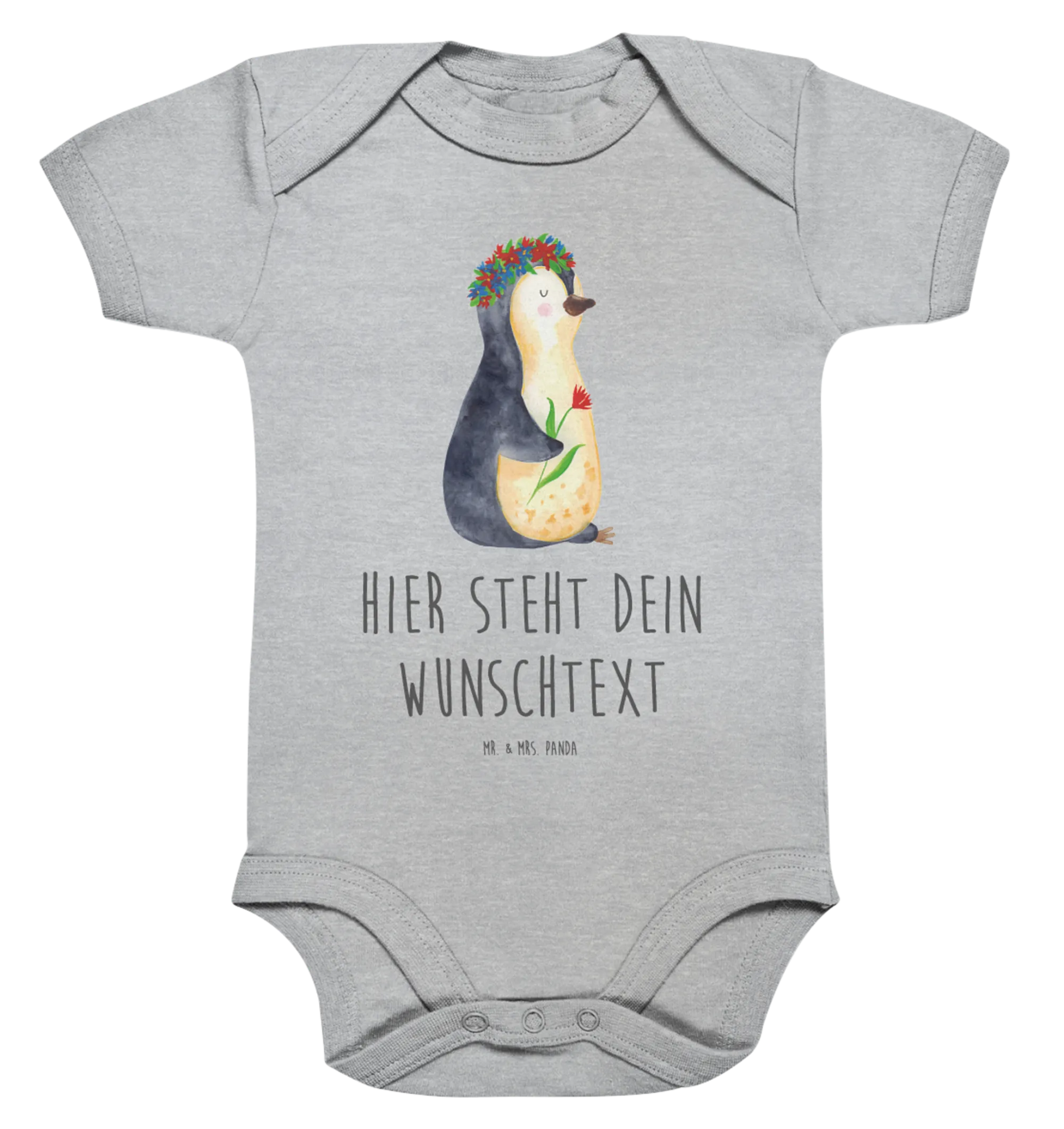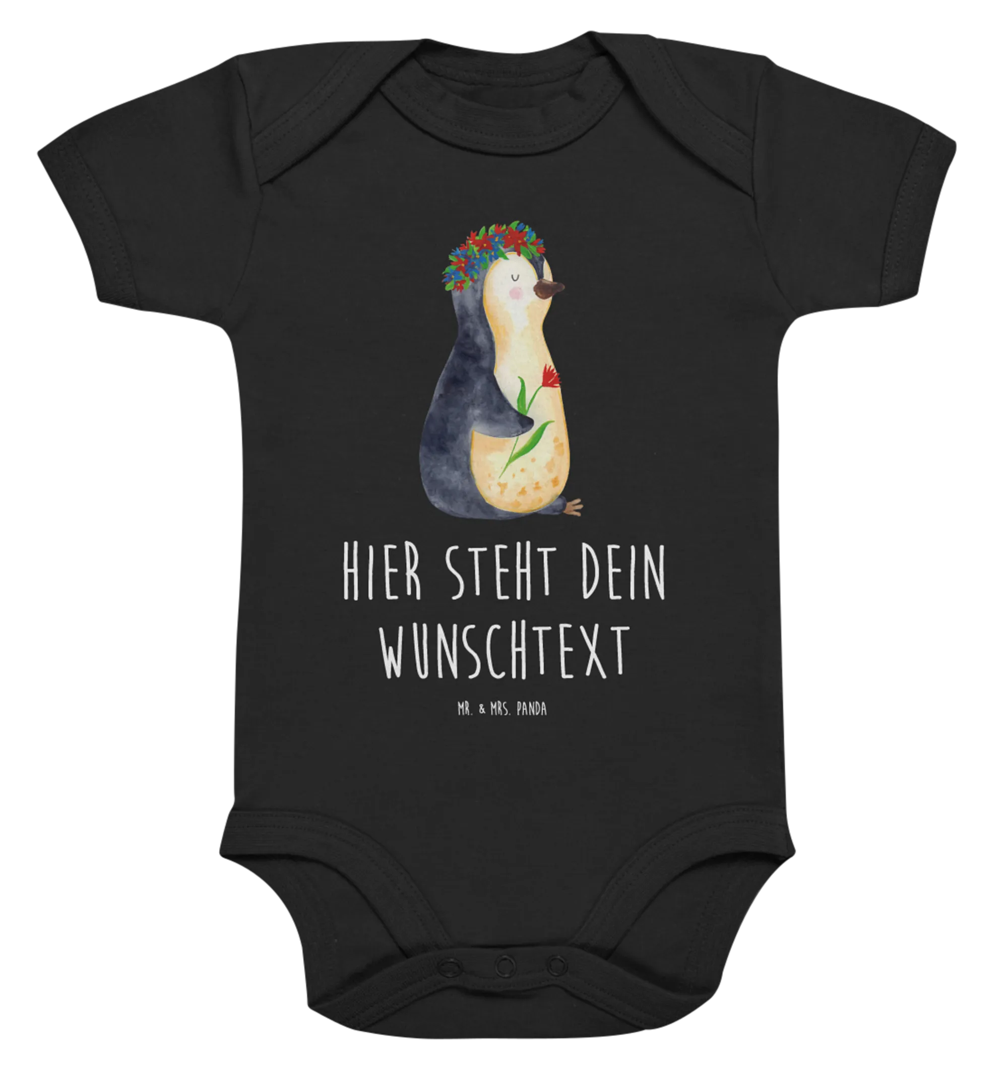 Suchst du nach dem perfekten Geschenk für ein neugeborenes Baby oder vielleicht für den eigenen kleinen Liebling? Dann ist der personalisierte Baby Body mit dem süßen Pinguin Blumenkranz aus der Pinguin-Kollektion von Mr. & Mrs. Panda genau das Richtige!