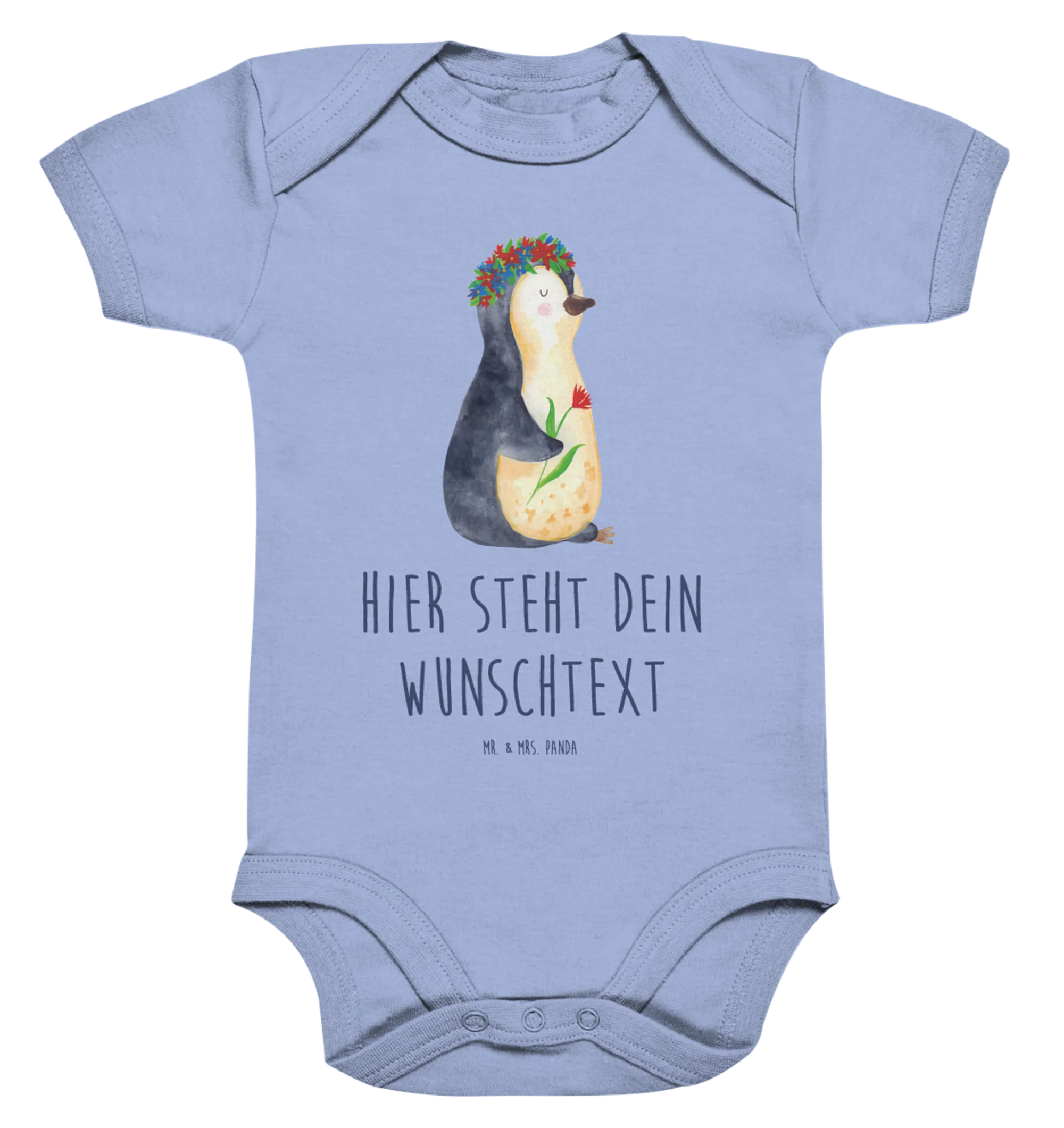 Der personalisierte Baby Body Pinguin Blumenkranz ist das perfekte Geschenk für frischgebackene Eltern und ihre kleinen Schätze! Wenn Du auf der Suche nach einzigartiger und liebevoll gestalteter Babykleidung bist, dann ist dieser Body aus der Pinguin-Kollektion von Mr. & Mrs. Panda genau das richtige für Dich. Der süße Pinguin mit Blumen auf dem Kopf und einer Blume in der Hand bringt nicht nur ein Lächeln auf die Gesichter der Eltern, sondern macht auch das Baby zu einem niedlichen Blickfang!