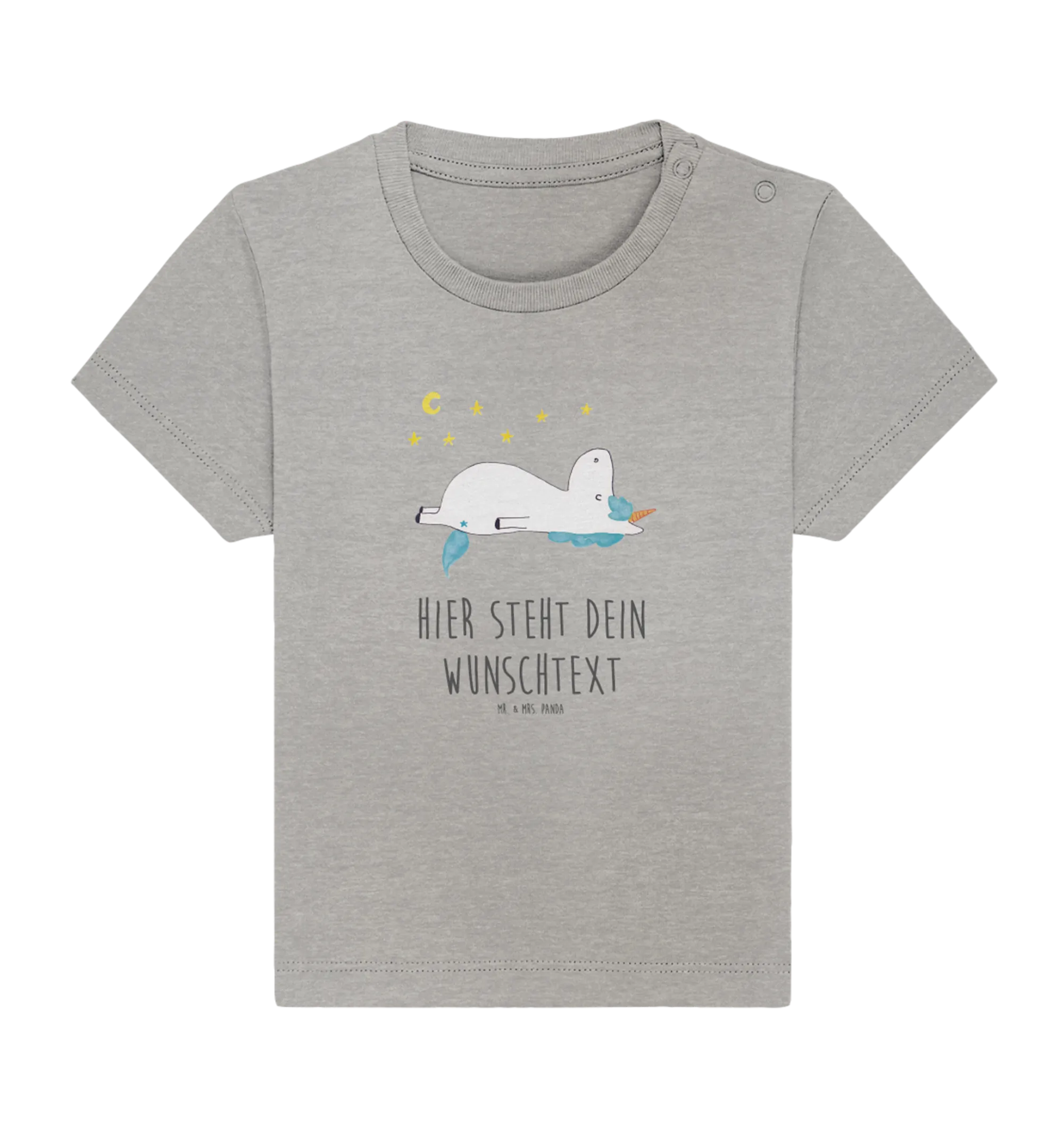 Beautiful personalized organic baby T-shirt from Mr. & Mrs. Panda featuring a premium quality print. Wonderful Material: - 100% cotton (organic quality, ring-spun, combed) - Weight: 155 g/m² - Single jersey - Fit: Regular fit - Button placket with 1 matching color snap and 1 hidden snap on the shoulder for easier dressing