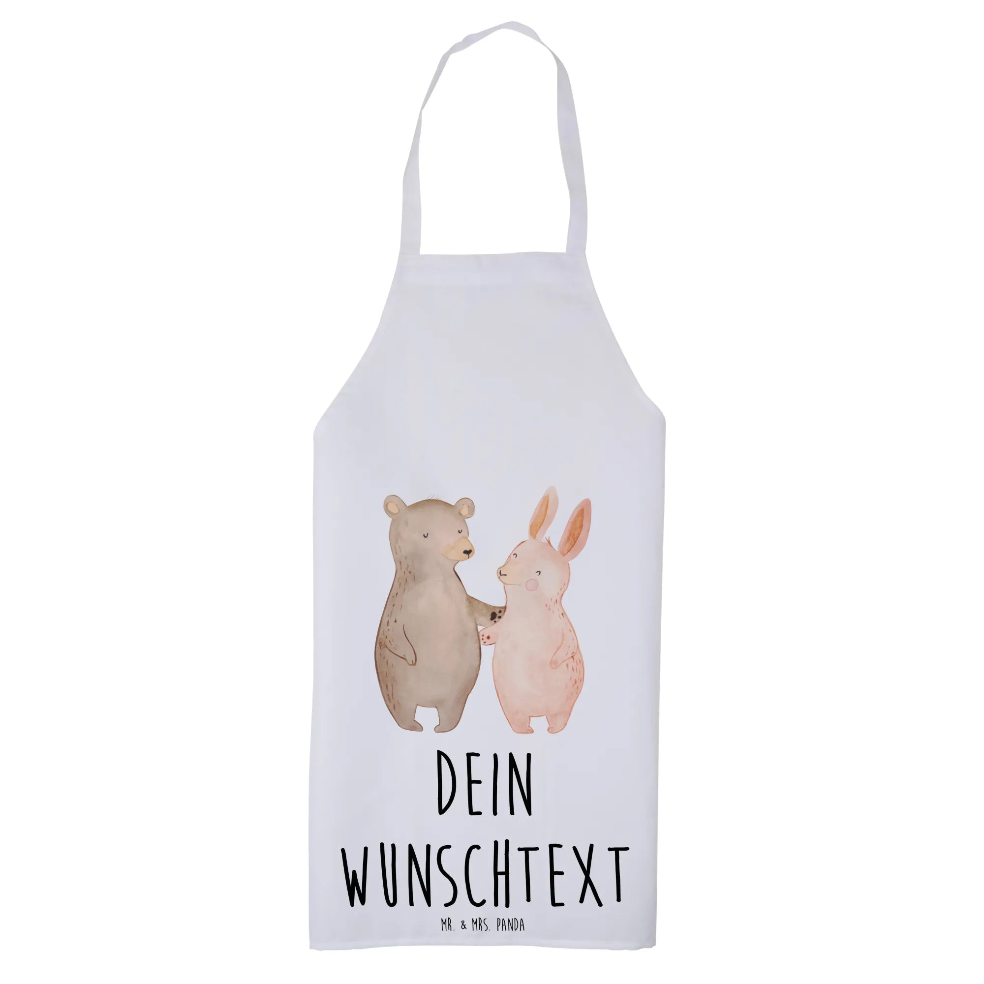 Personalized Cooking Apron bear and rabbit Embrace - White