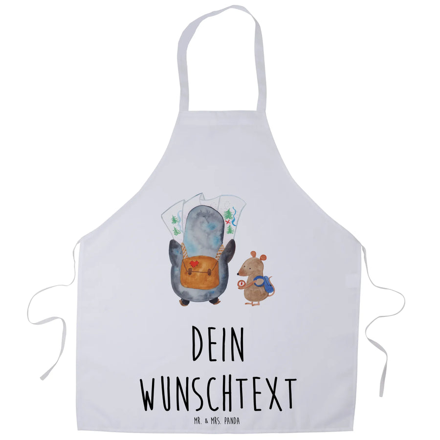 Personalized Cooking Apron Penguin & Mouse Hiker - White
