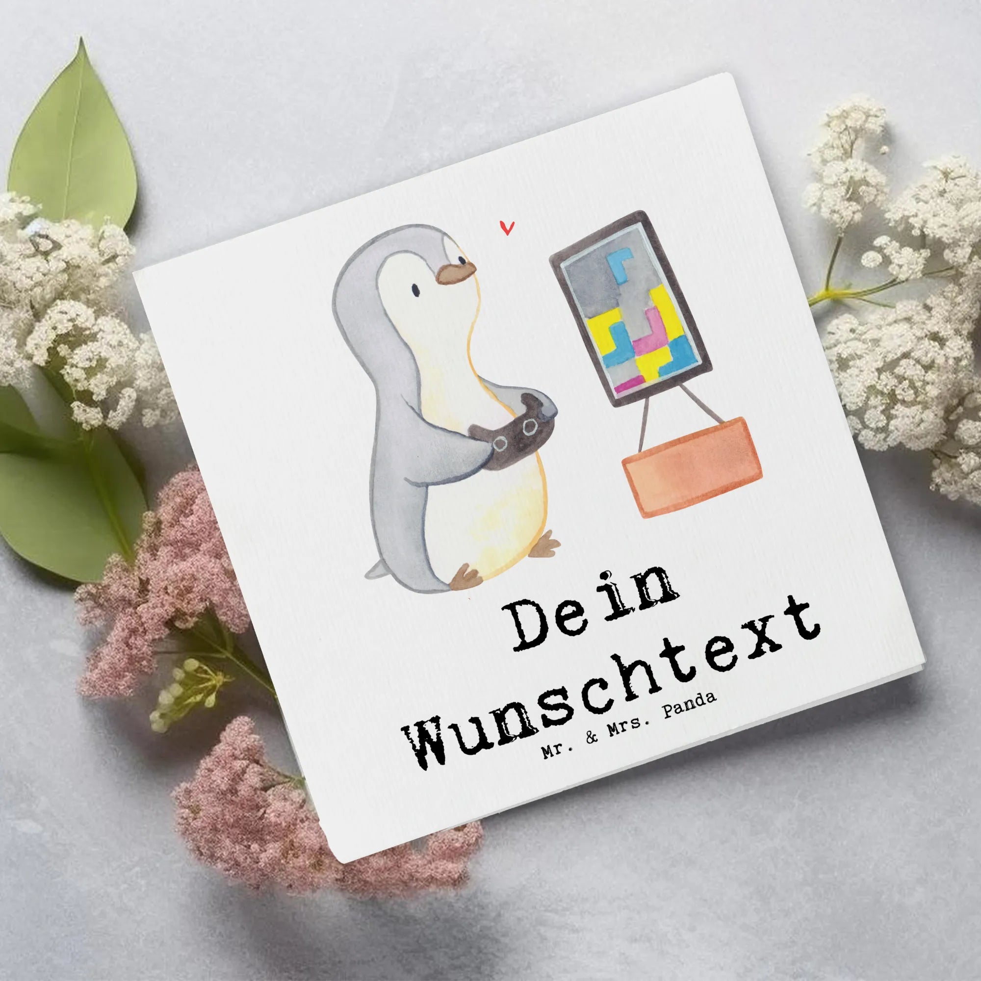 Personalized Deluxe Card penguin Gamble - White
