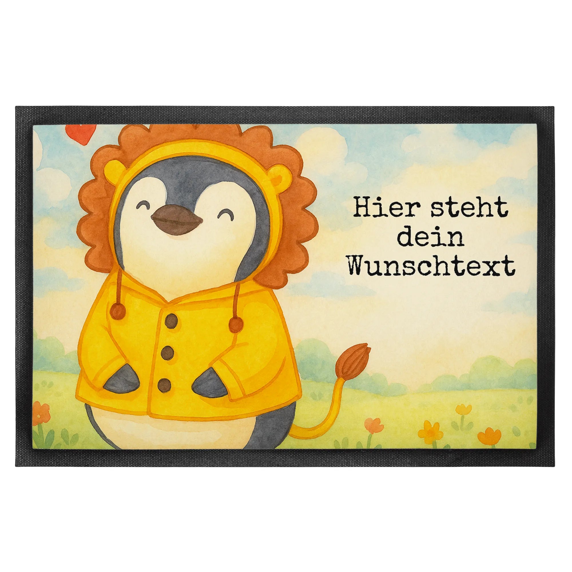 Willkommen bei der Sternzeichen-Kollektion von Mr. & Mrs. Panda: Unsere personalisierte Fußmatte mit dem liebevollen Löwe-Motiv verbindet Humor, Astrologie und Persönlichkeit zu einem besonderen Geschenk. Das Motiv zeigt einen niedlichen Pinguin im Löwenkostüm – handgezeichnet von Mrs. Panda – begleitet vom Spruch „Im Herzen Löwe: Kühn wie der Sonnenaufgang, majestätisch wie der König.“