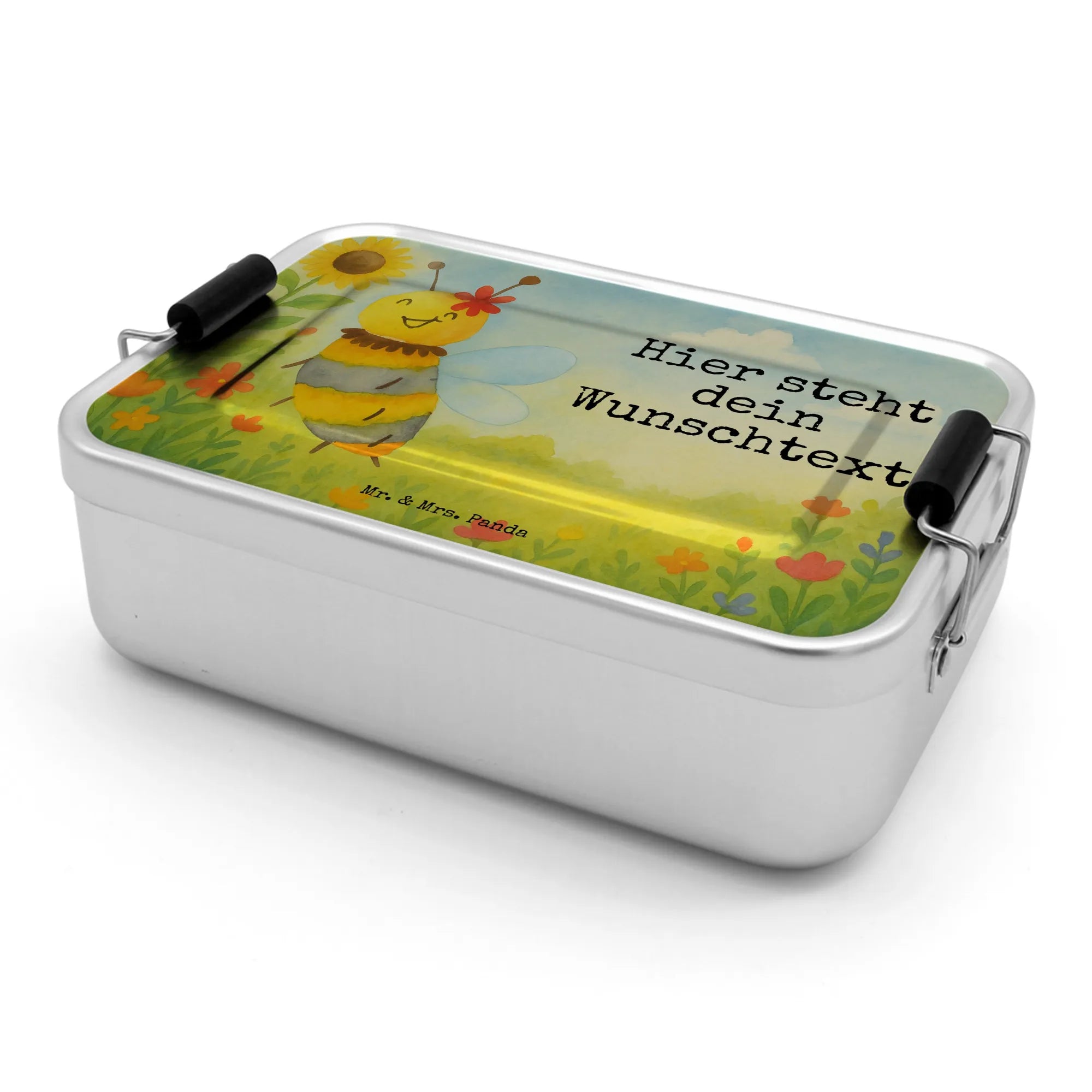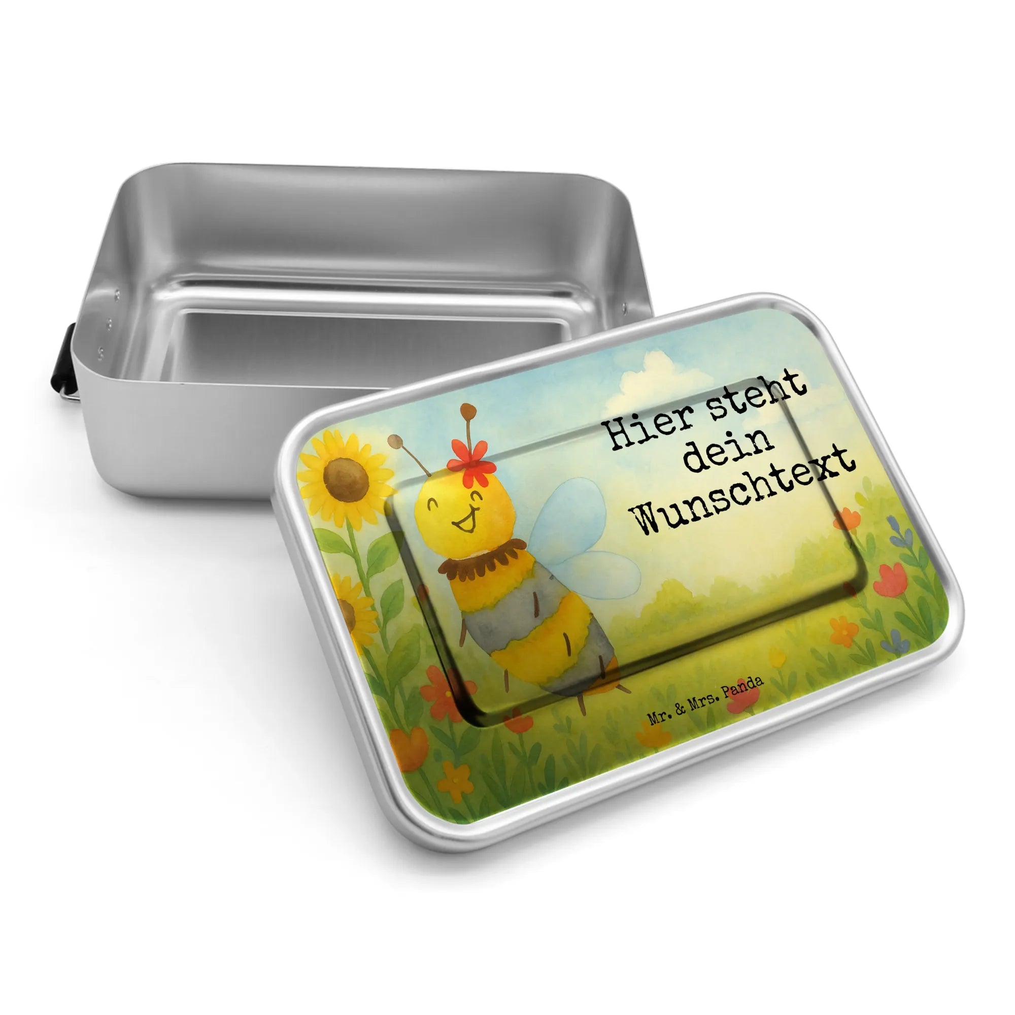 Hey! Meet your new Personalized Metal Lunch Box from Mr. & Mrs. Panda — a cheerful, durable companion for your snacks and meals. This aluminum lunch box is printed with beautiful Mr. & Mrs. Panda motifs and sweet sayings, and you can personalize it with your desired text or name to make it truly yours. It's built to last with high-quality, long-lasting aluminum and gives off that nostalgic retro look we love. Perfect as a school lunchbox or for your workday, it offers enough room for a full breakfast or a hearty lunch and is especially sturdy for everyday use. Practical features include tested food safety, an easy-to-use double clip latch for secure closing, and a removable lid for simple packing. For best care, we recommend hand washing with a soft sponge. Measurements: 173 mm / 7 inch x 118 mm / 5 inch x 55 mm / 2 inch. Material: premium, durable aluminum. Ideal for sandwiches, snacks, fruit and little surprises. It also makes a wonderful personalized gift for friends, kids or coworkers who appreciate a mix of function and nostalgic design. Enjoy your meals with a little extra panda love!