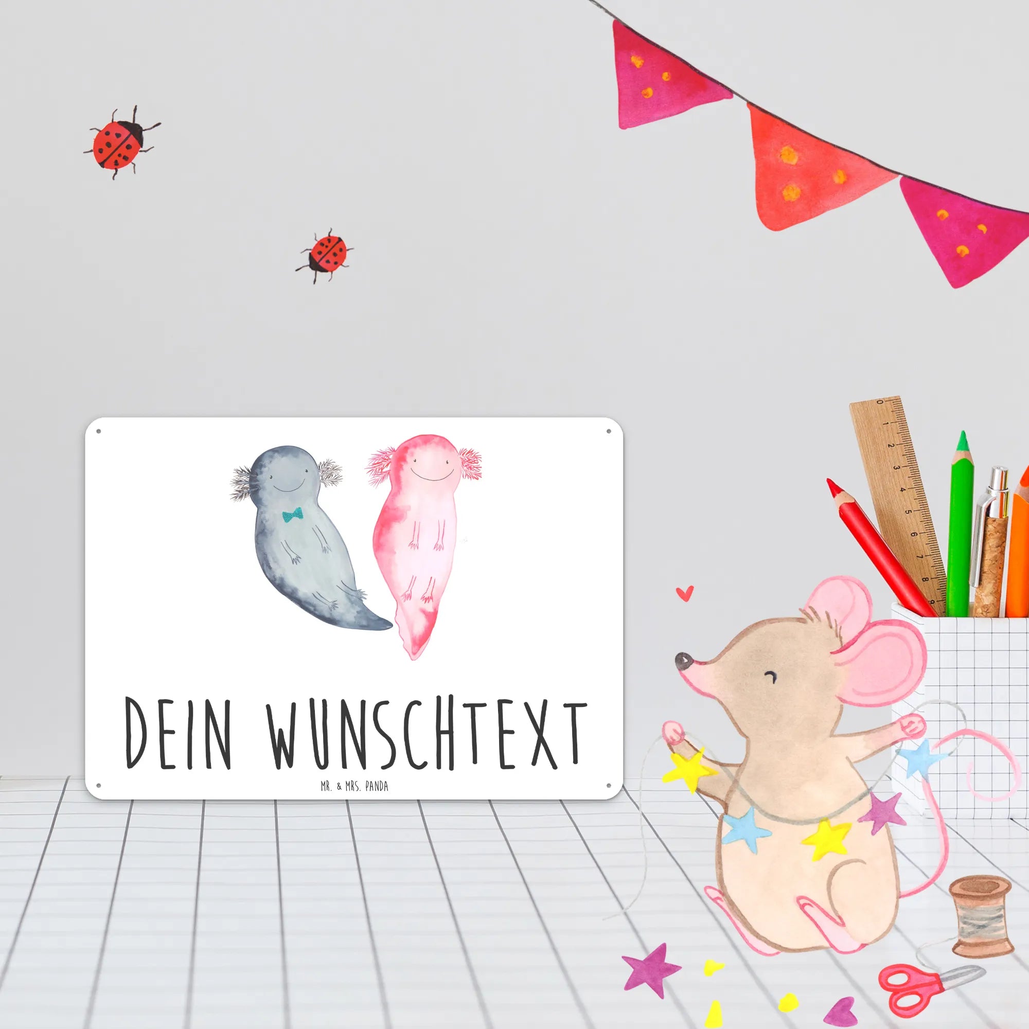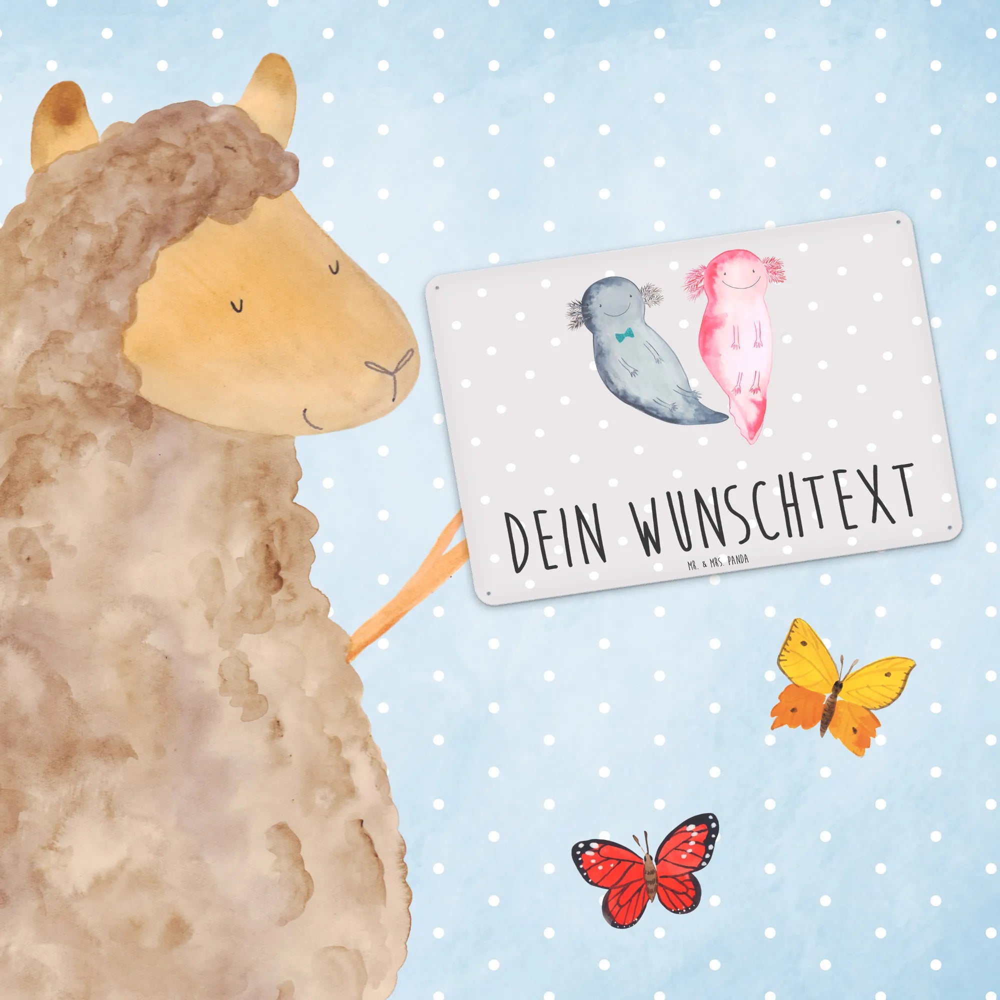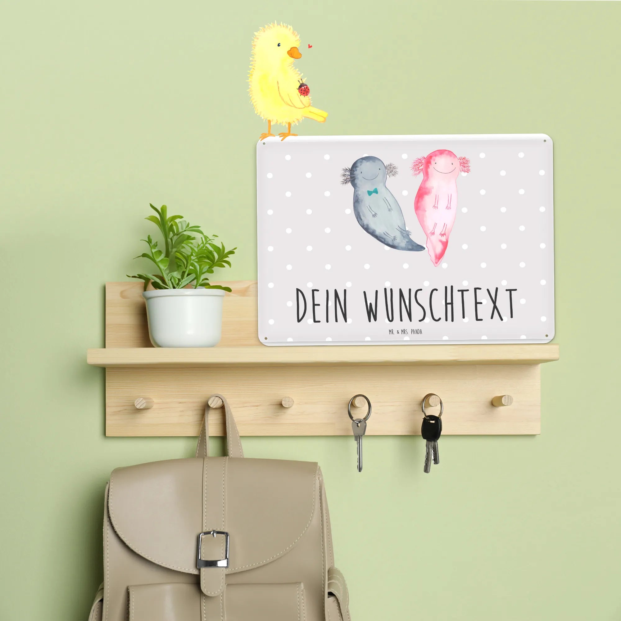 Personalized metal sign axolotl Girlfriend - DIN A6 - Pastel Gray