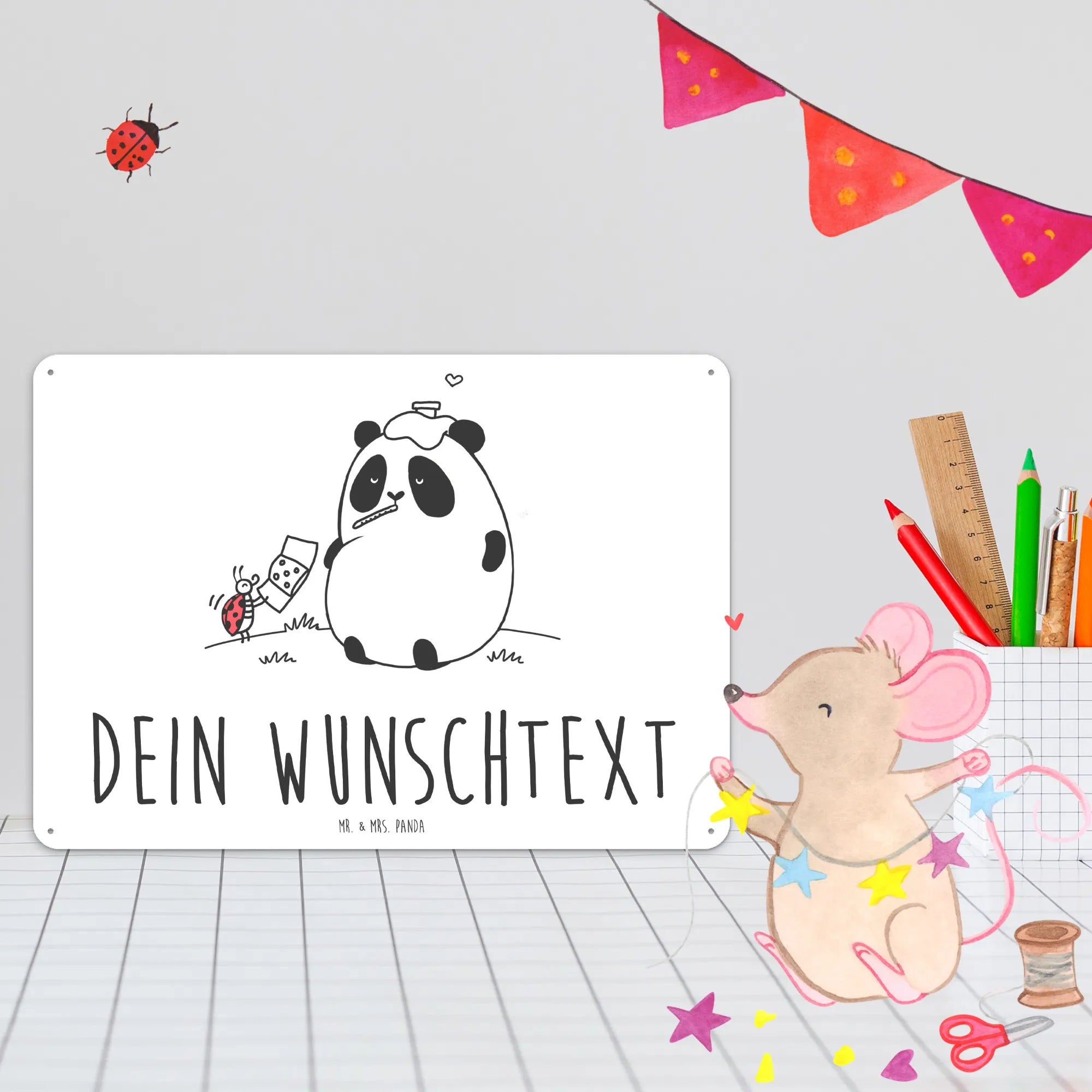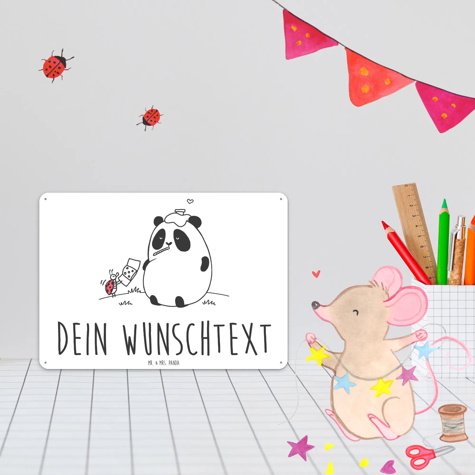 Personalized metal sign Panda Get well soon - DIN A6