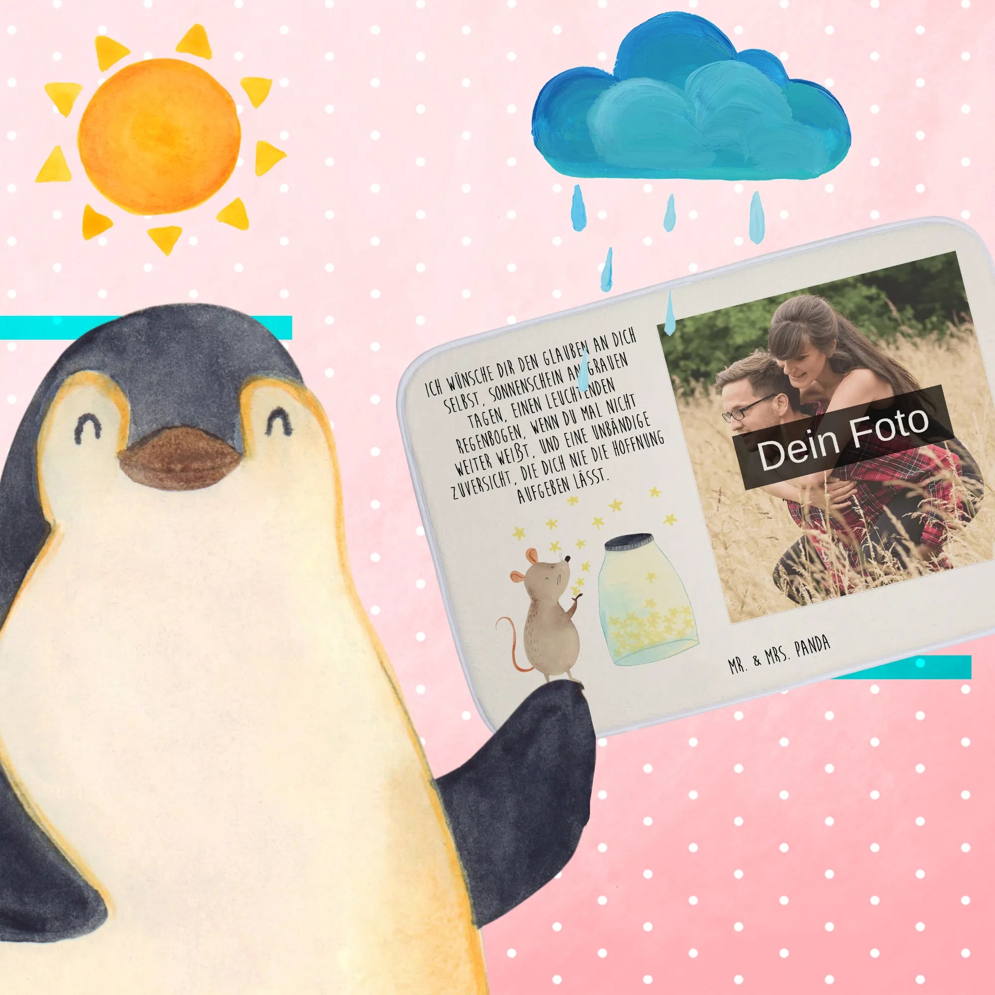 Add personality and safety to your bathroom with our Customizable Photo Bathmat from Mr. & Mrs. Panda. Size: 590 mm (23 inch) x 400 mm (16 inch), crafted from a particularly fluffy premium synthetic fibre that feels gentle under your feet. The mat’s top layer is highly absorbent to keep floors dry, while the back is coated with anti-slip rubber nodules to prevent sliding. We print your uploaded photo in high resolution alongside our charming motifs, so please make sure the image is of good quality and that you have permission to use it. Check the crop before ordering so faces or important details aren’t cut off. Each mat is lovingly printed by us to ensure bright, lasting colours. Care is easy — wash the mat at 30°C in the washing machine. With its extra absorbency and anti-slip gumminoppen, this Customizable Photo Bathmat offers both a decorative accent and reliable safety. It makes a wonderful personalised gift or a cozy upgrade for your own bathroom that you’ll enjoy every day.