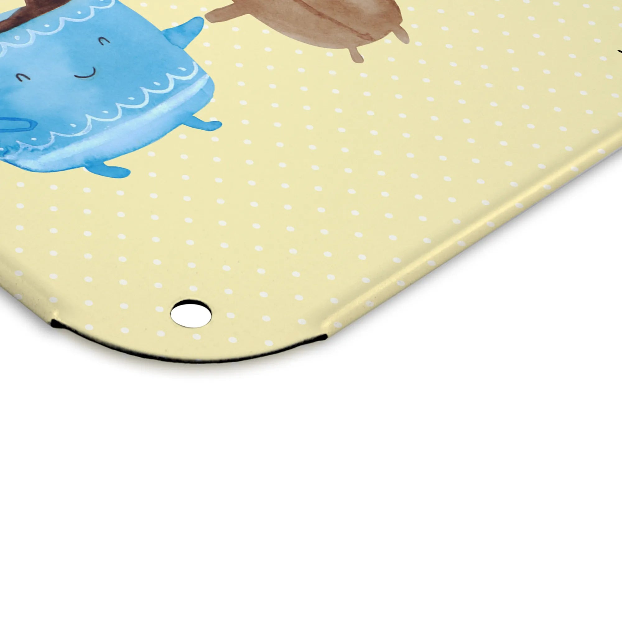 Unser personalisiertes Foto-Blechschild von Mr. & Mrs. Panda ist eine liebevolle Dekoration für Zuhause und Büro. Es wird mit niedlichen Panda-Motiven und handlichen Sprüchen bedruckt und lässt sich mit deinem Wunschfoto individualisieren. Achte bei der Auswahl des Fotos auf hohe Auflösung sowie einen passenden Bildausschnitt, damit der Druck gestochen scharf wird und keine wichtigen Details verloren gehen. Bitte nur Bilder verwenden, an denen du die Rechte besitzt. Maße: 70 mm x 148 mm x 105 mm. Hergestellt aus edlem Stahlblech ohne Wölbung, mit umgefalzten Kanten, abgerundeten Ecken und seidenmatter Oberfläche. Der Druck ist hochwertig und langlebig, das Schild verfügt über vier Bohrungen zur optimalen Befestigung. Ideal für die Tür oder als Wanddekoration im Innenbereich, außerdem eine tolle Geschenkidee für Freunde und Familie. Pflegehinweis: einfach mit einem feuchten Tuch abwischen. Besonderheit: in verschiedenen Größen erhältlich, sodass du die perfekte Variante für deinen Raum findest.