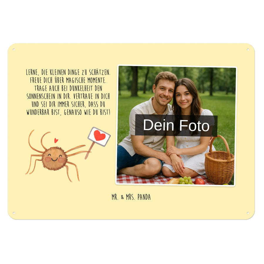 Personalized Photo Metal Sign Spider Agatha Motivation - DIN A6 - Gelb Pastell