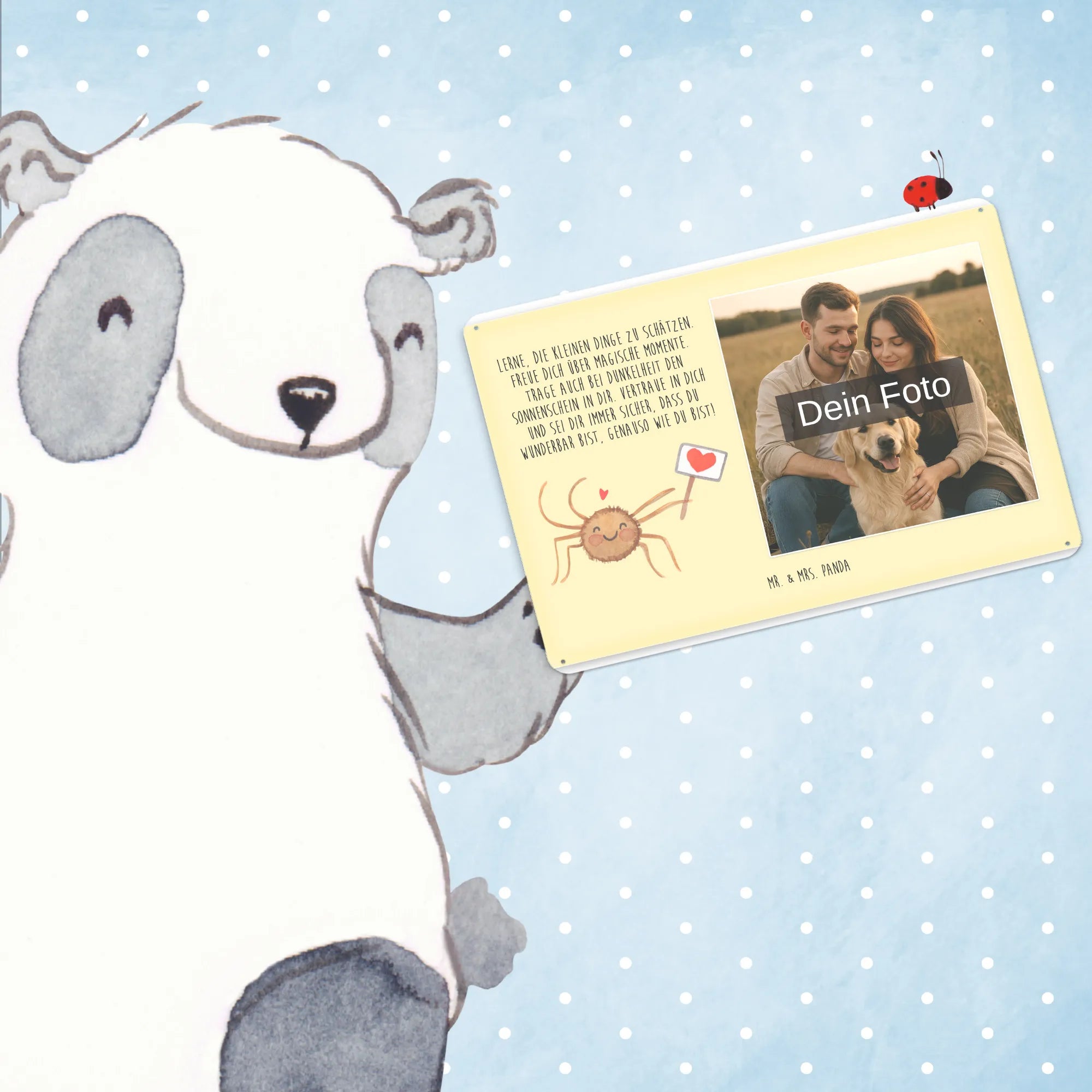 Personalized Photo Metal Sign Spider Agatha Motivation - DIN A6 - Pastel Yellow