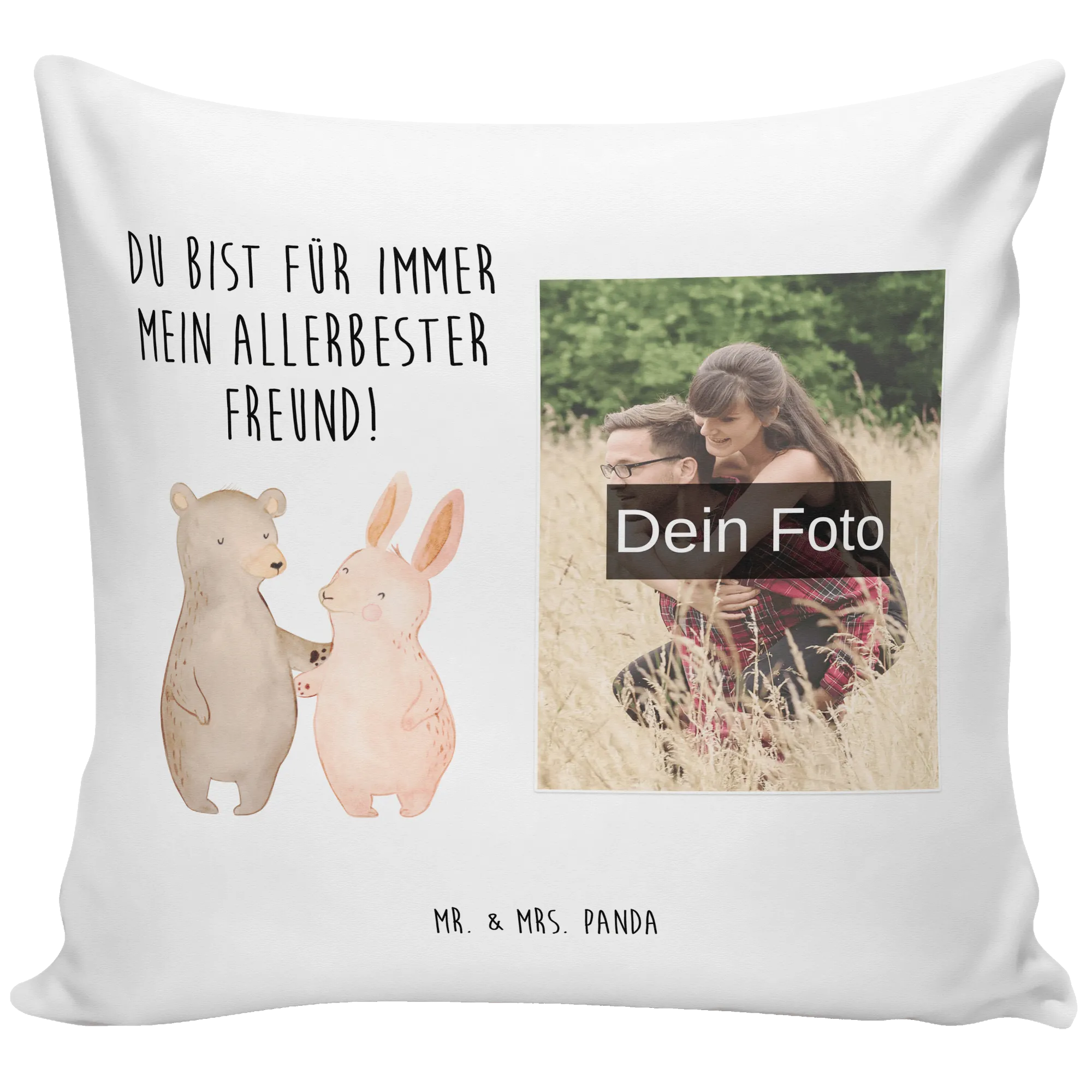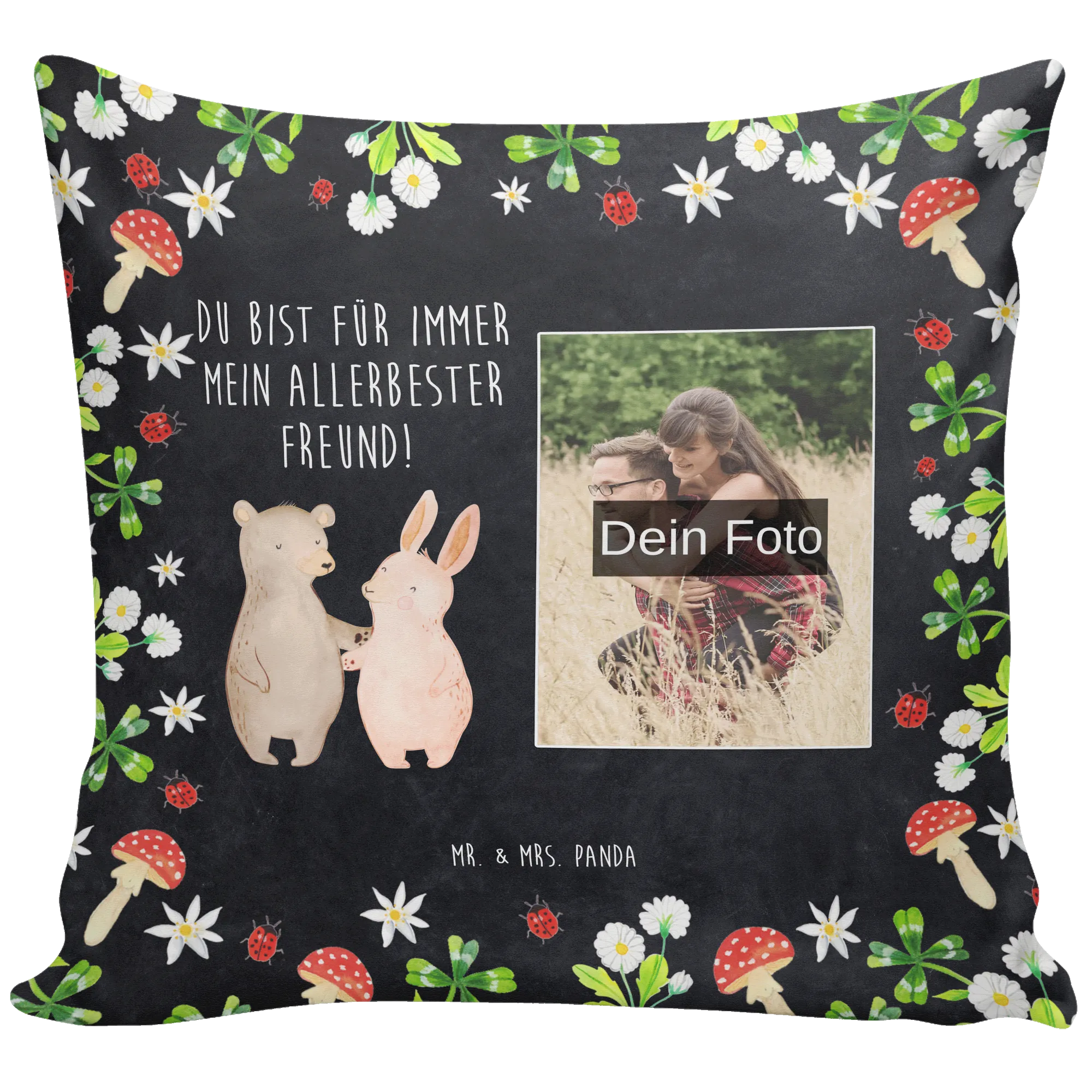 Personalized Photo Pillow bear and rabbit Embrace - Chalkboard