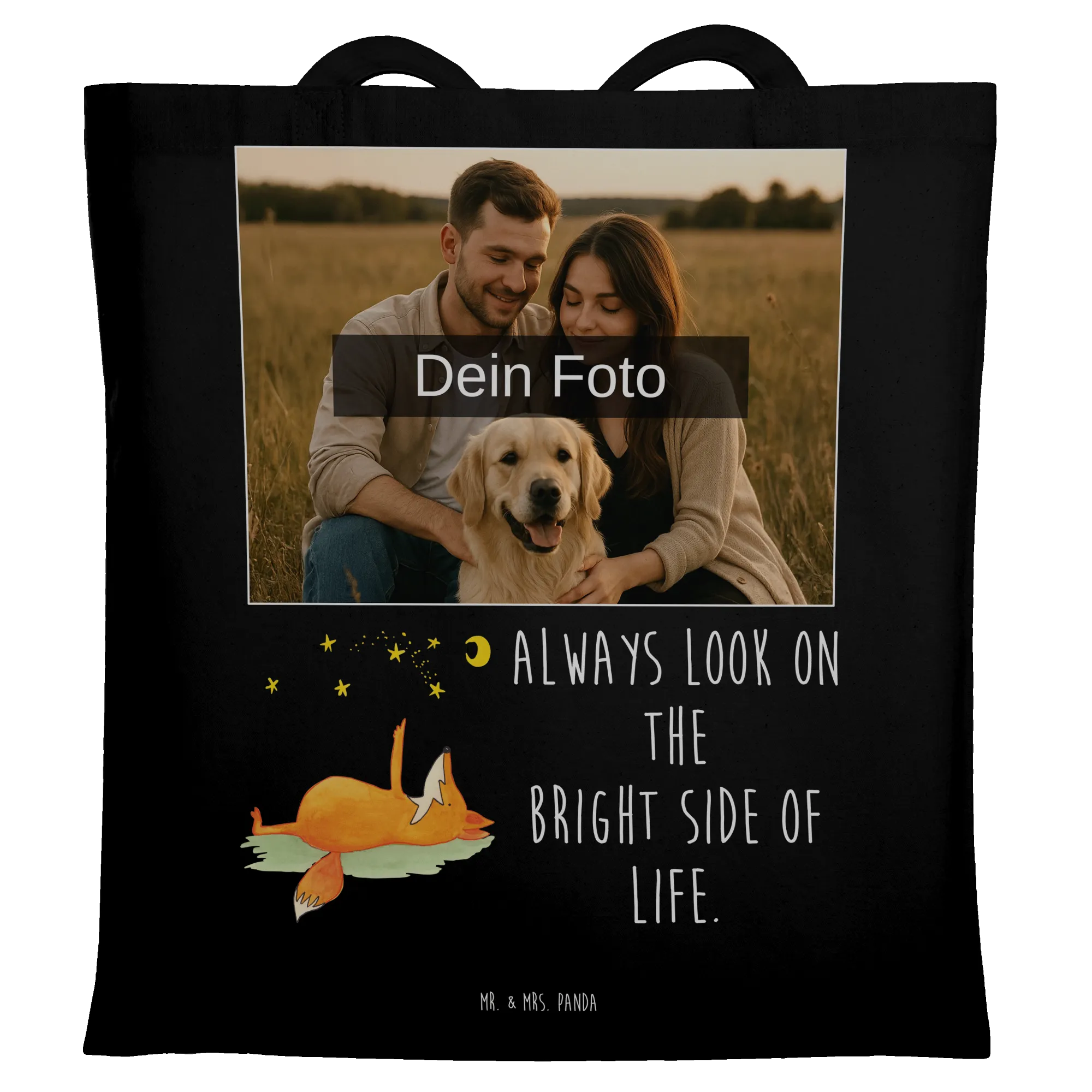 Personalized Photo Tote Bag Fox Stars - Black
