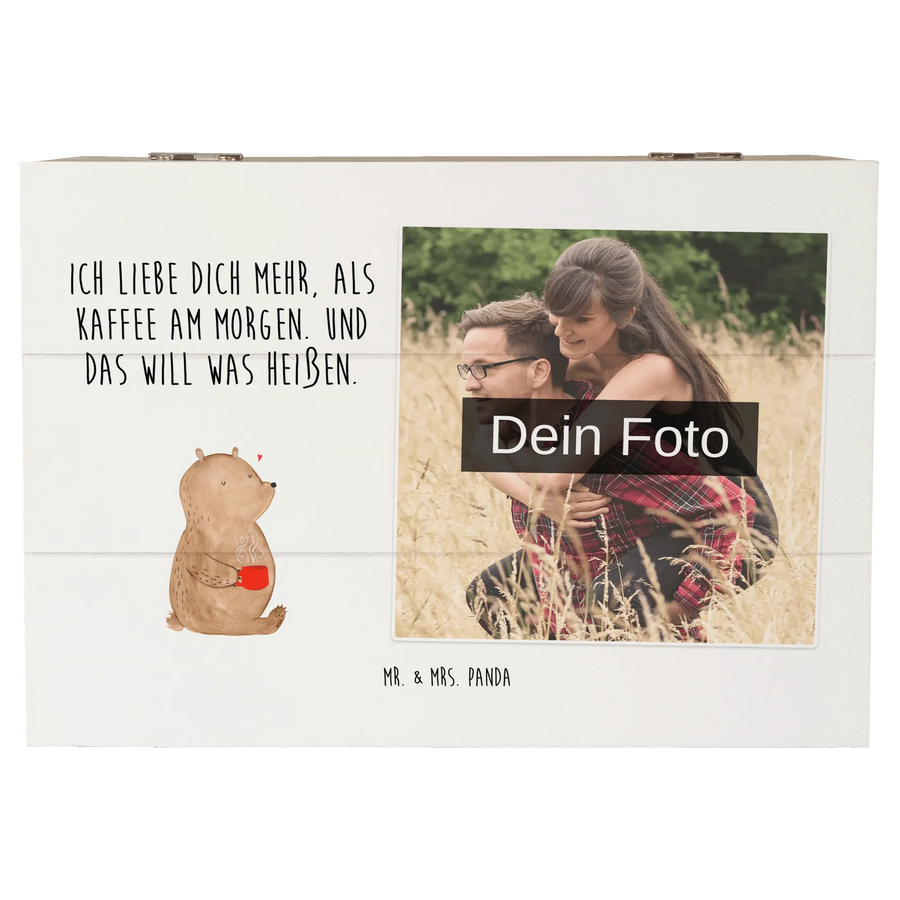 Personalized Photo Wooden Box bear morning coffee - 22 x 15 cm - White