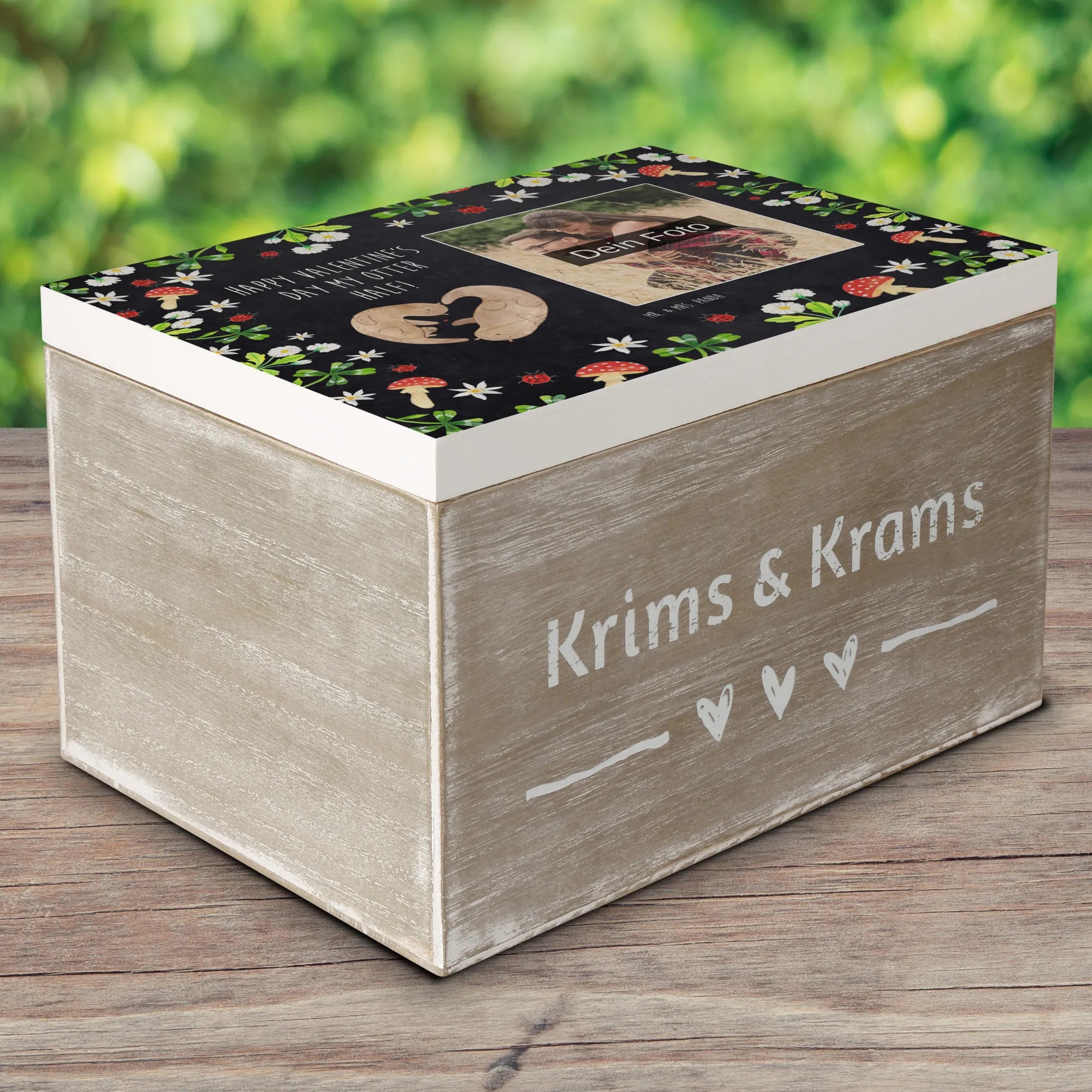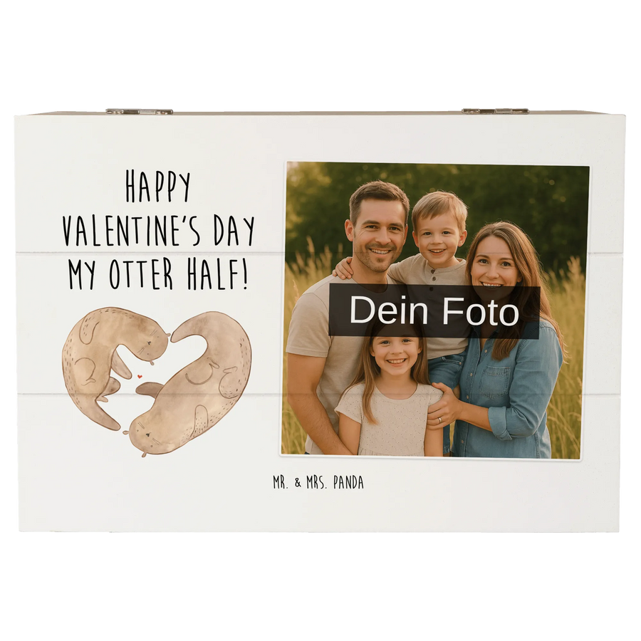 Personalized Photo Wooden Box otter valentine - 22 x 15 cm - White