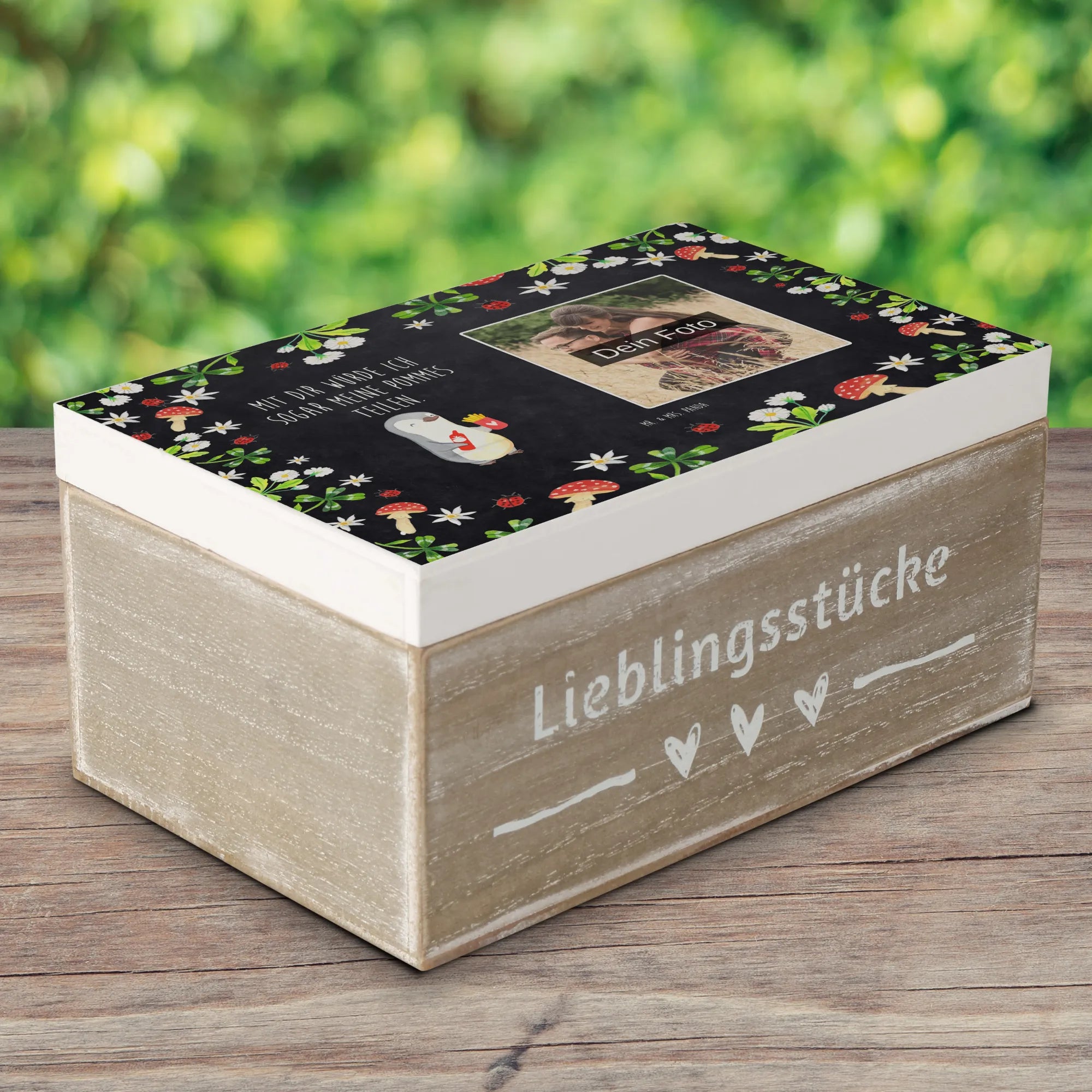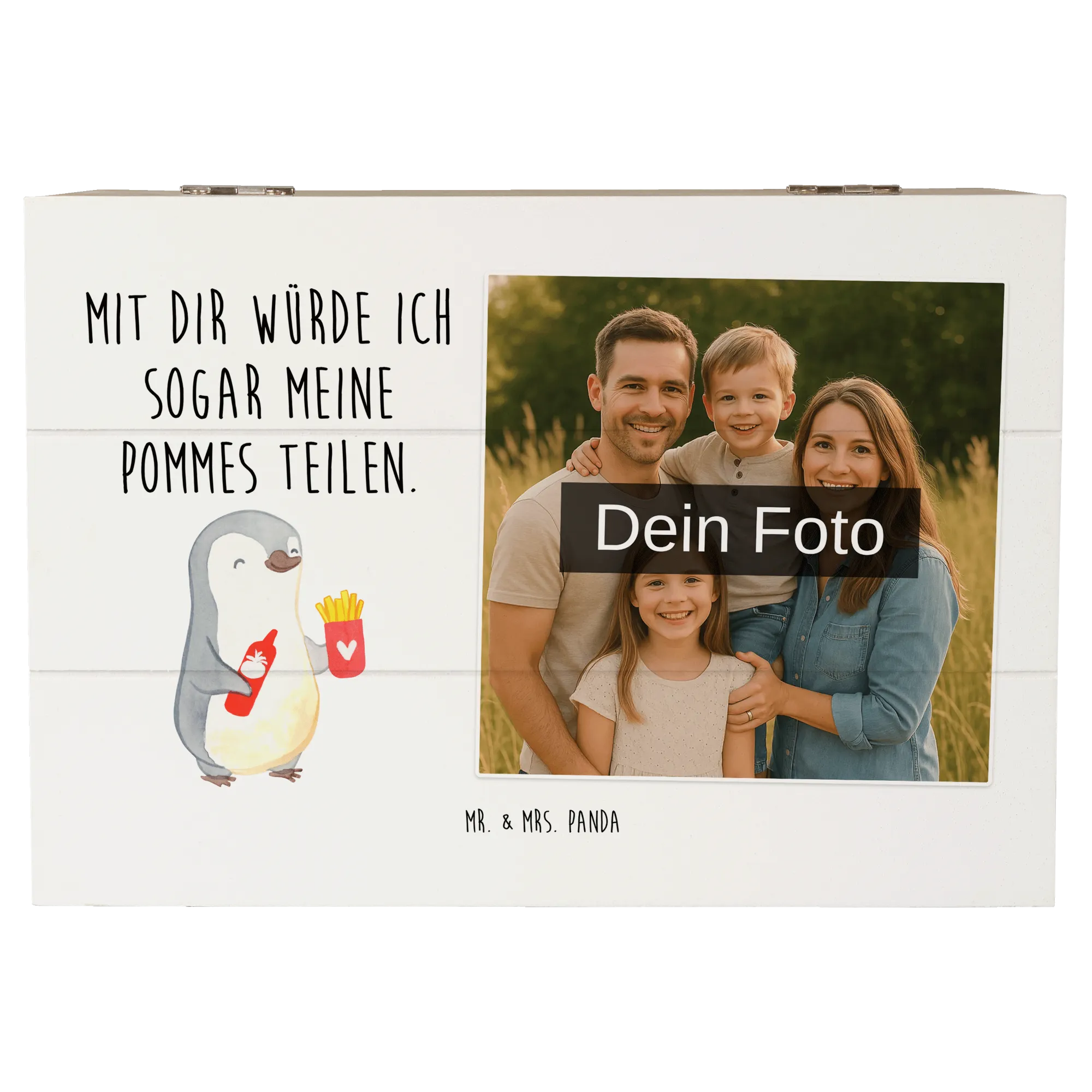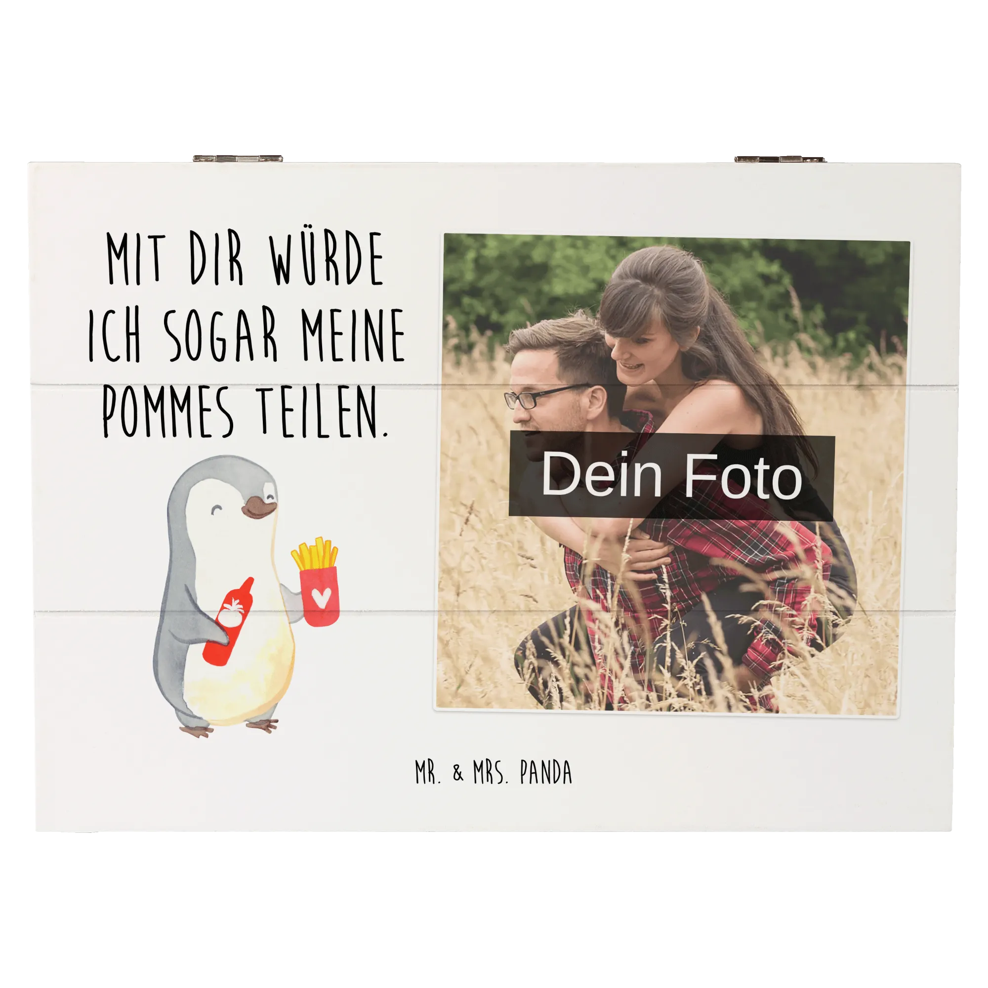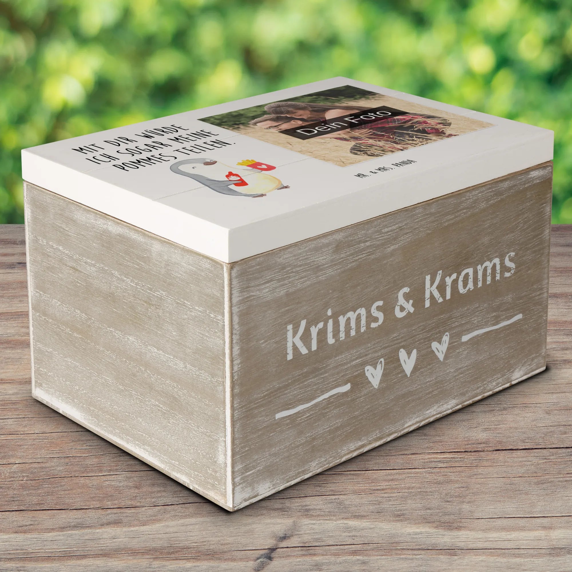 Personalized Photo Wooden Box penguin French fries - 22 x 15 cm - White