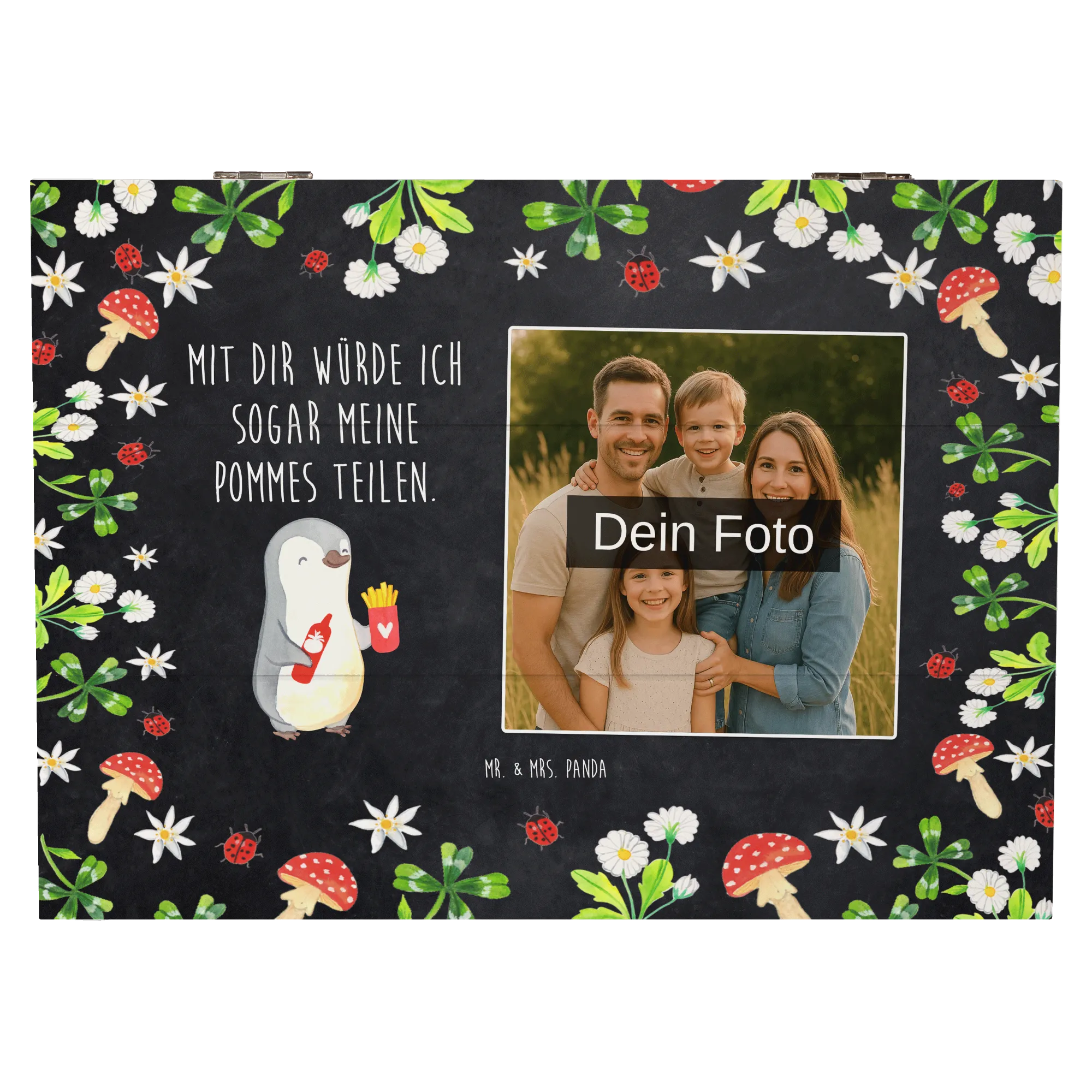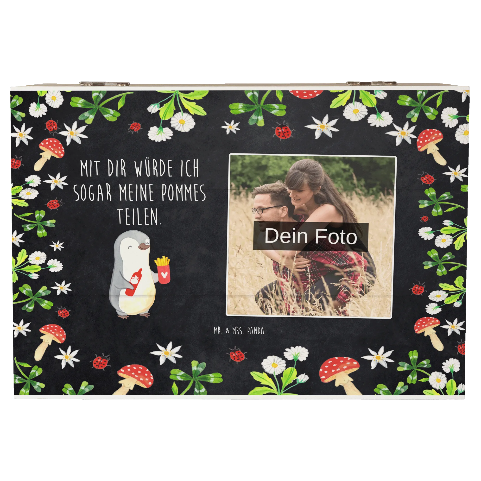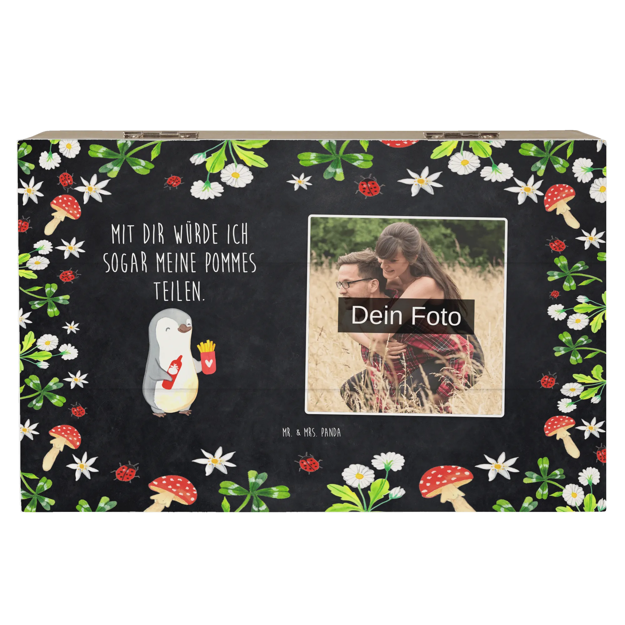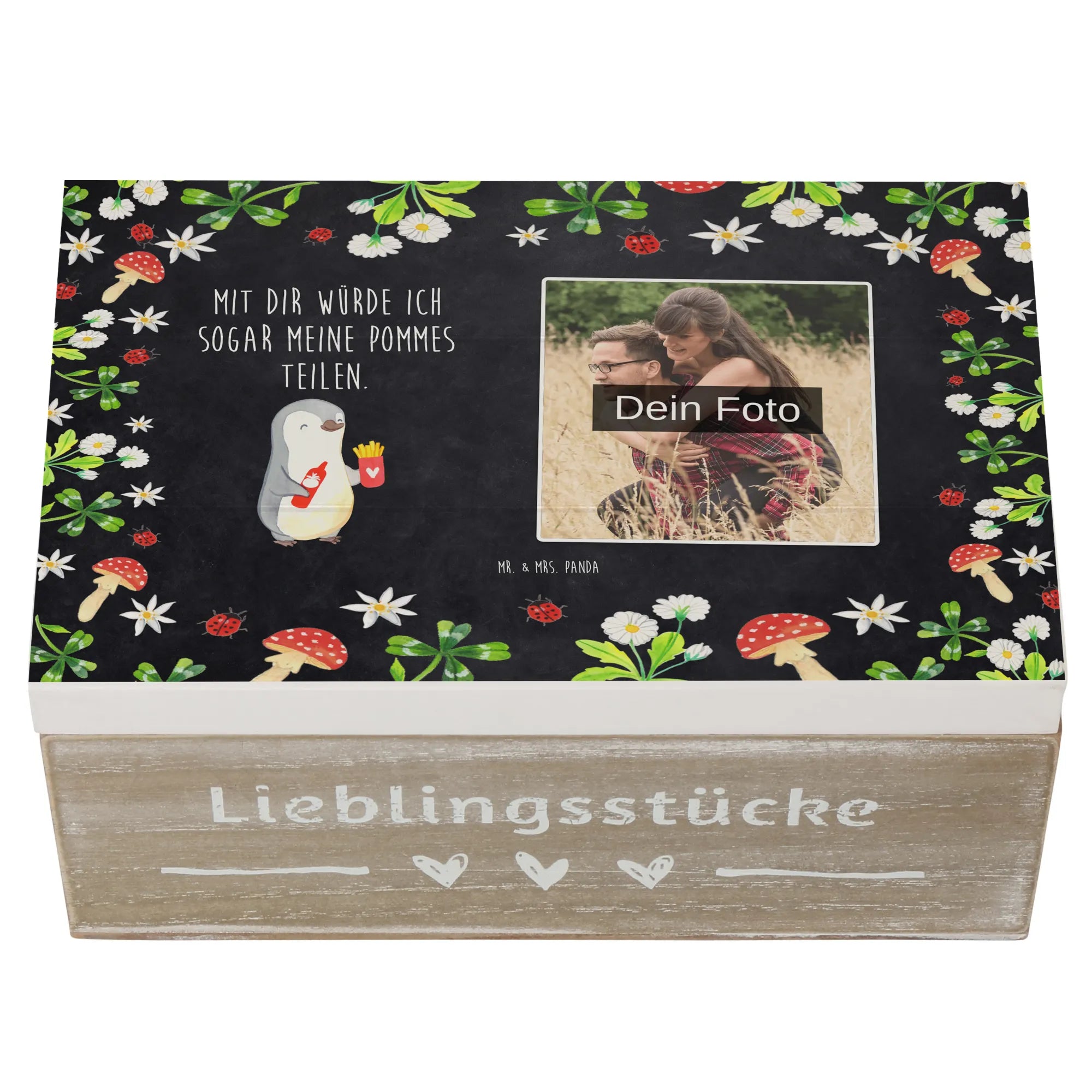 Personalized Photo Wooden Box penguin French fries - 22 x 15 cm - White