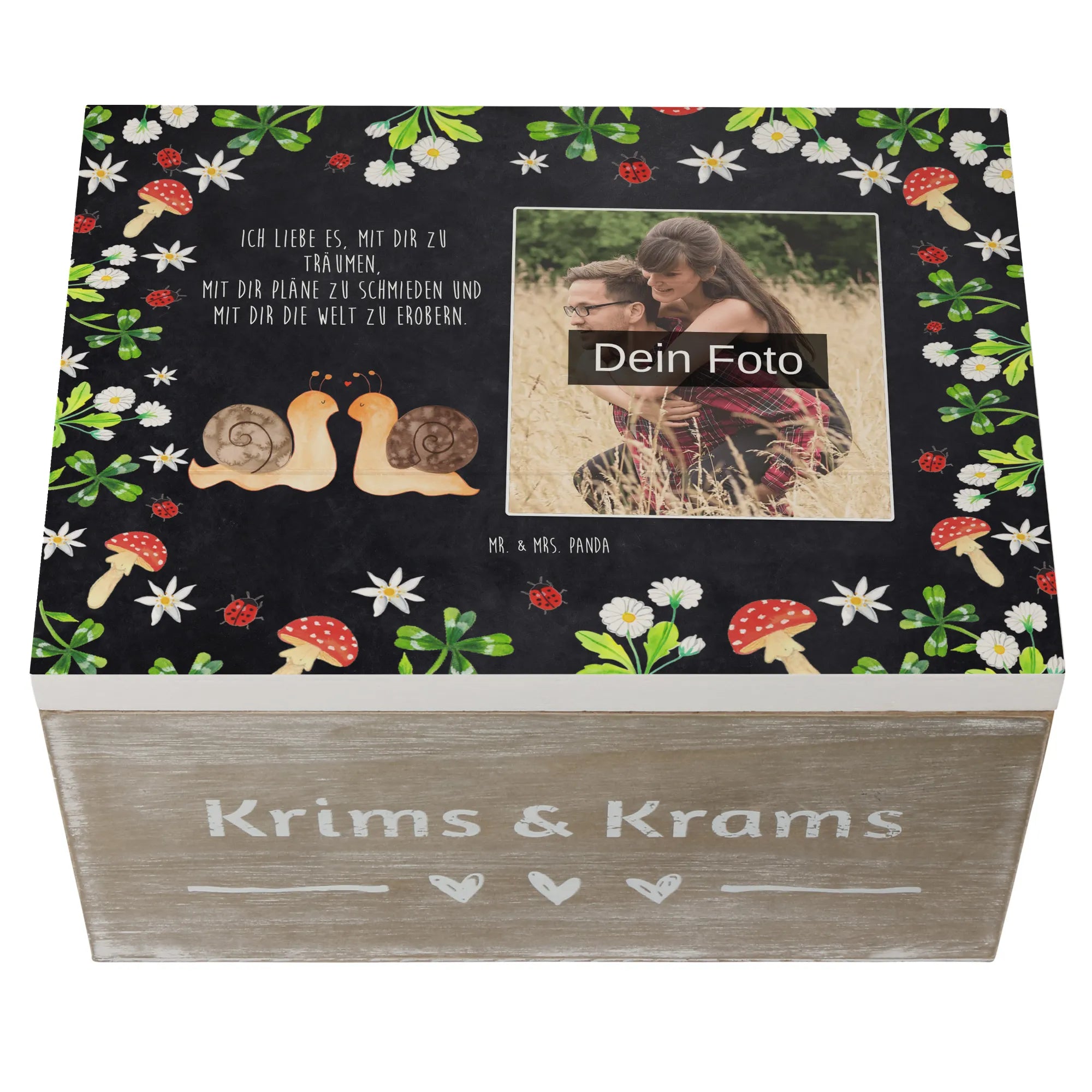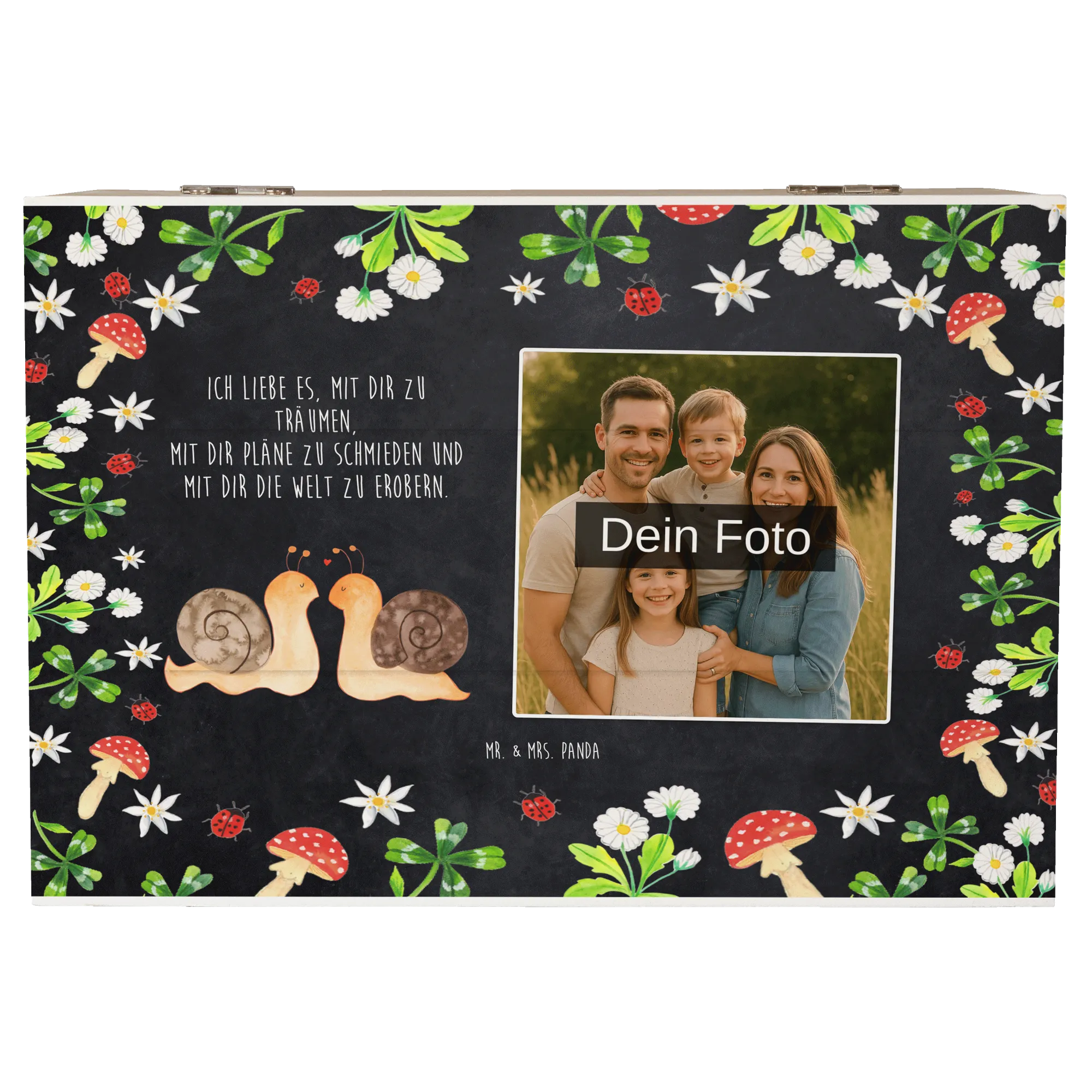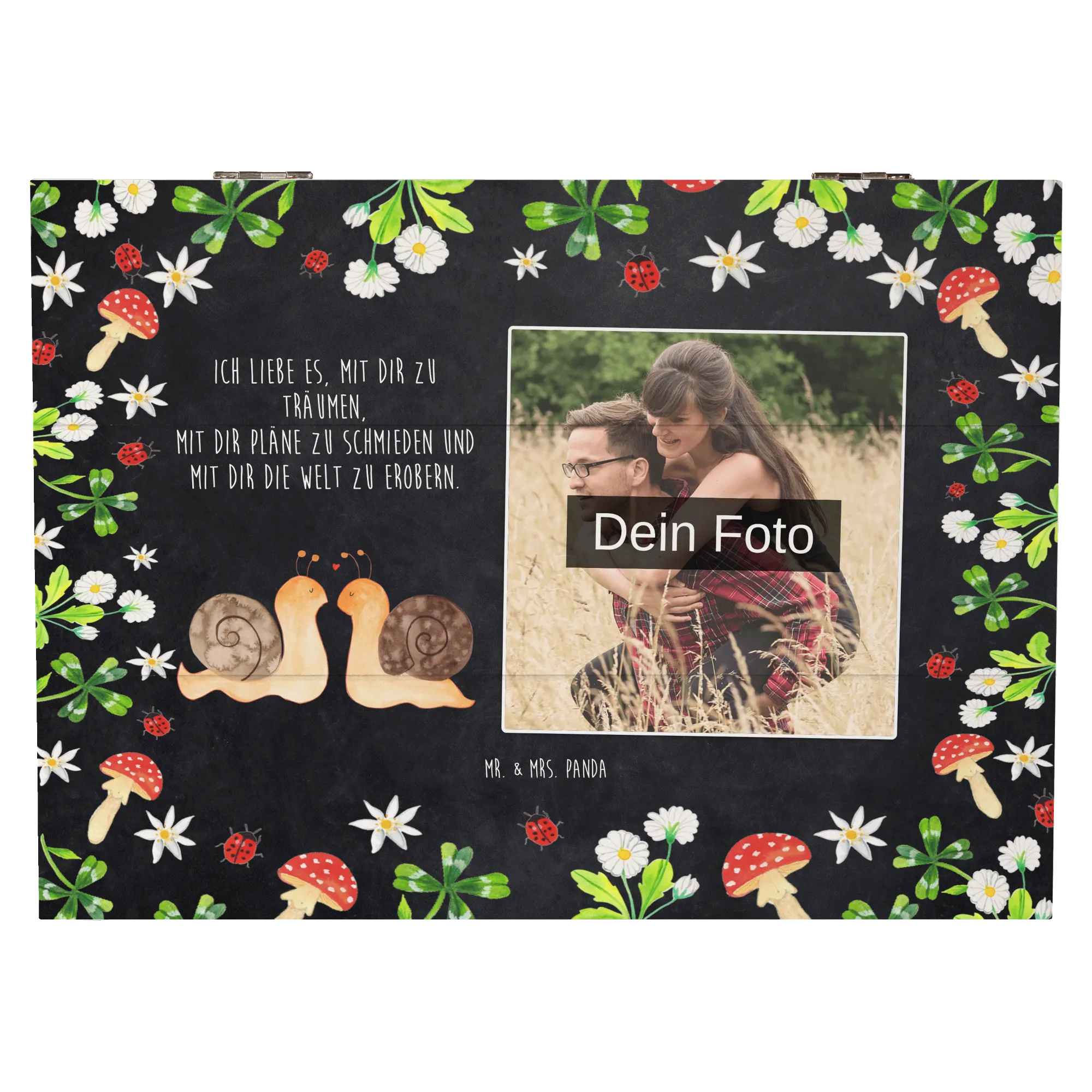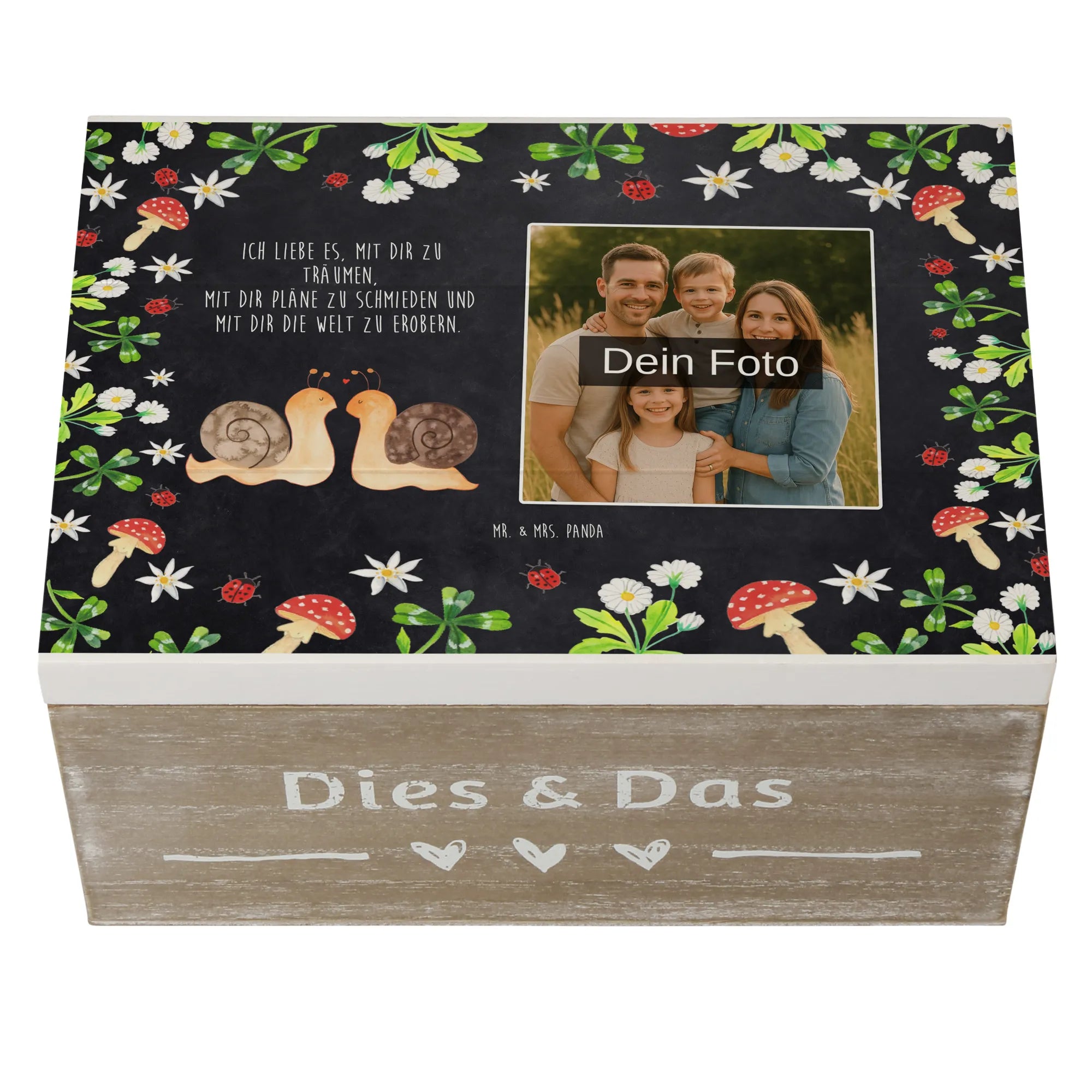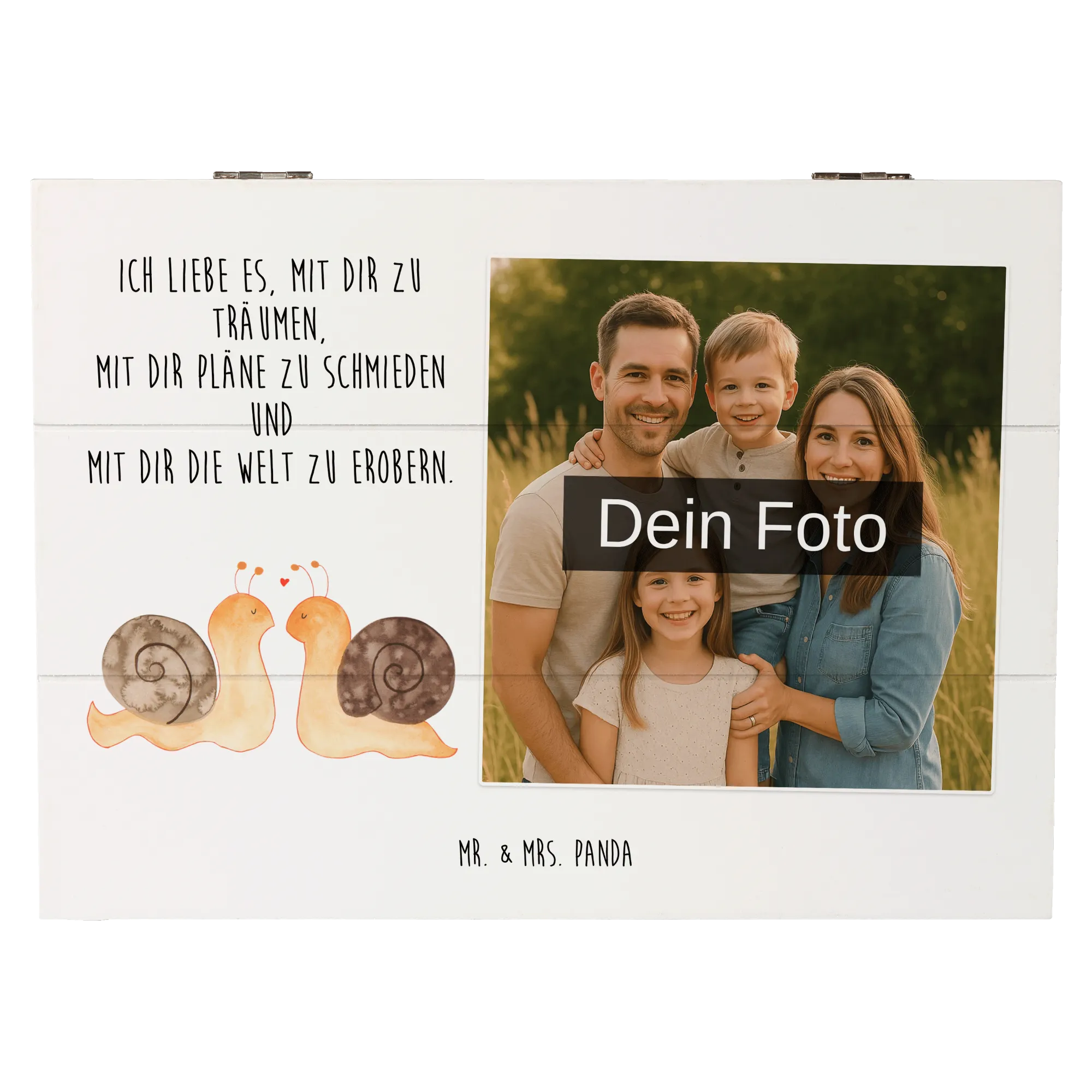 Personalized Photo Wooden Box Snails in love - 22 x 15 cm - White