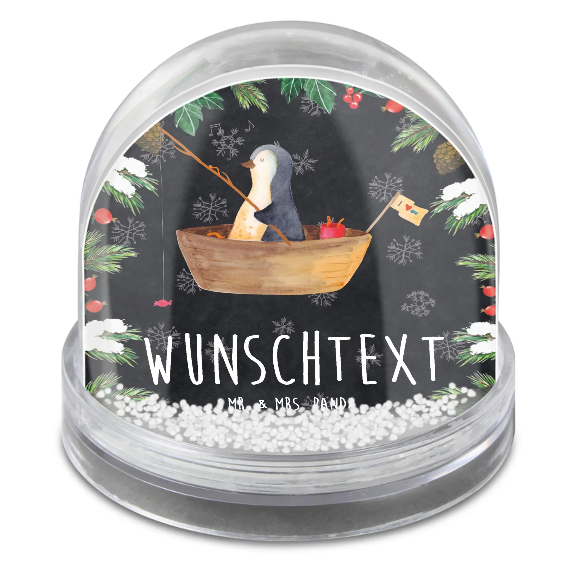 Personalized Snow Globe Penguin fishing boat - natural paper