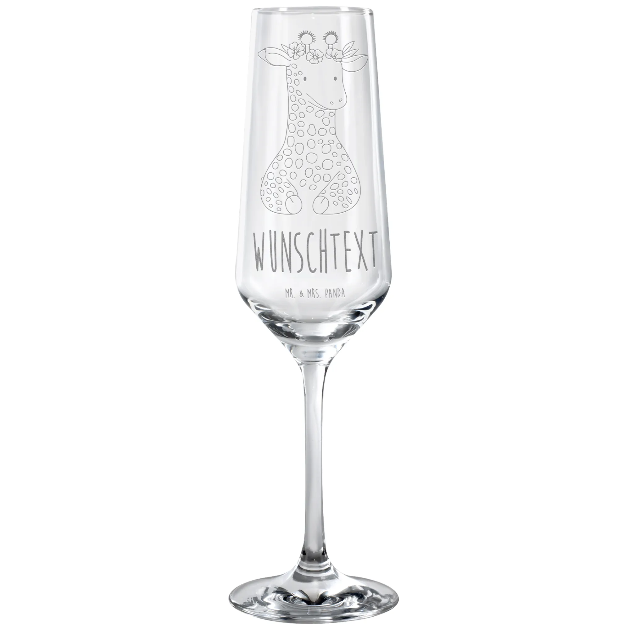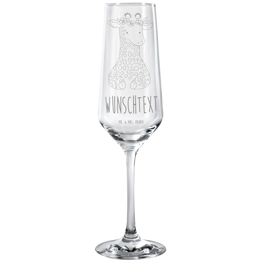 Personalized Sparkling Wine Glass giraffe flower wreath