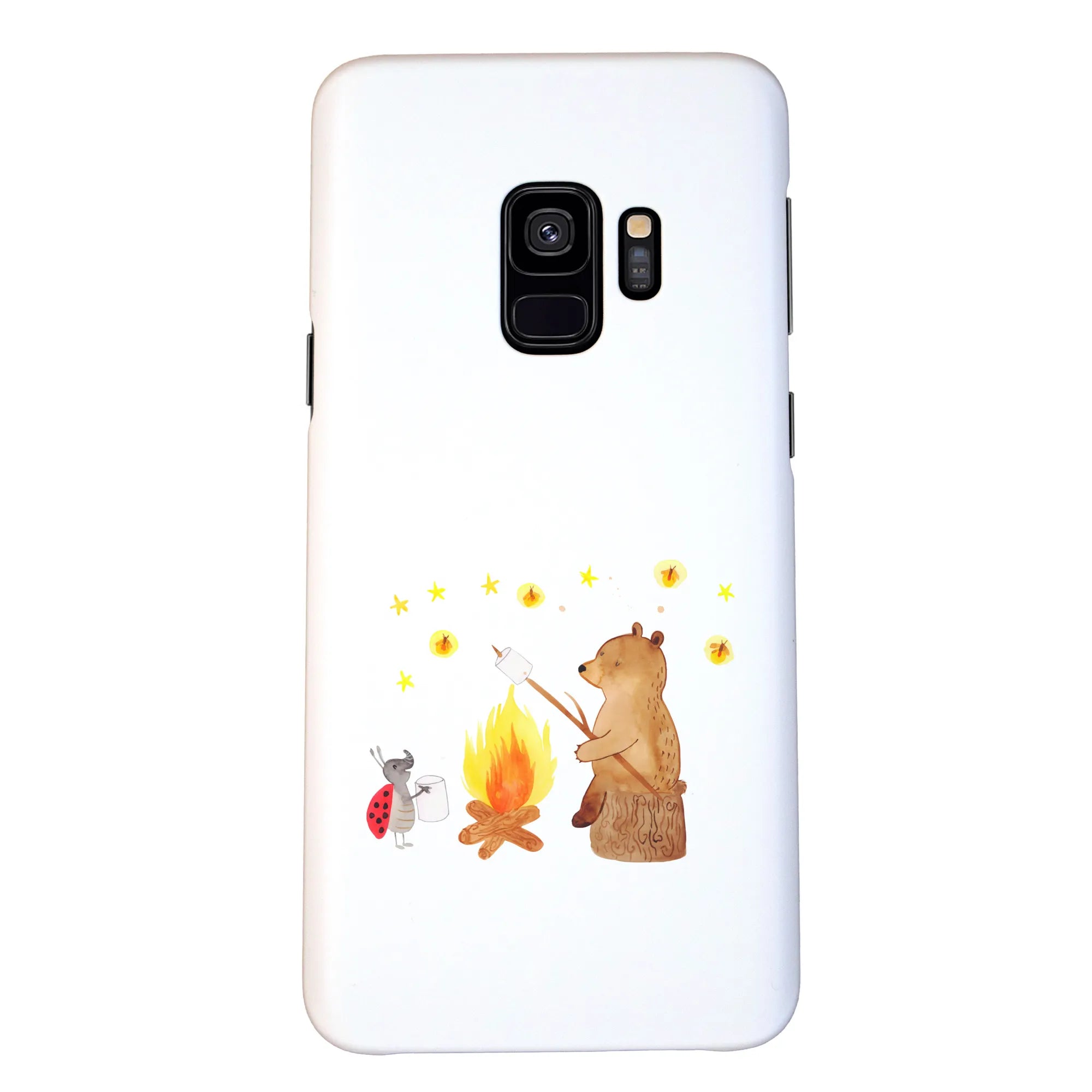 Introducing the perfect blend of cuteness and protection: the Samsung Galaxy S9 Phone Case featuring our delightful Bear & Ladybird campfire motif! This unique design showcases a joyful bear sitting on a tree stump, toasting a marshmallow over a warm campfire, while an adorable ladybird admires the flames nearby. This enchanting illustration by Mr. & Mrs. Panda is more than just a phone case; it’s a piece of art that brings a cozy campfire feeling to your everyday life.